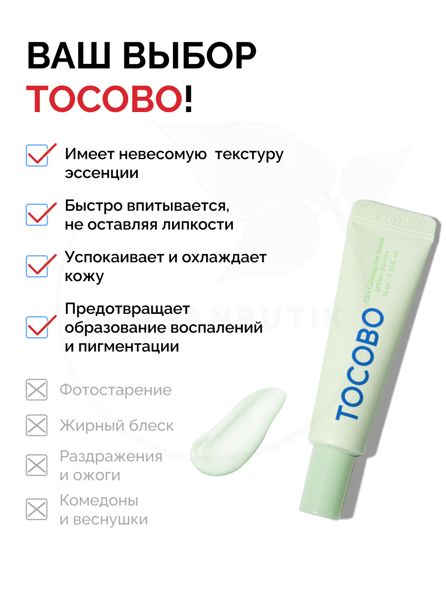 Сыворотка cолнцезащитная для лица с экстрактом центеллы 10ml | Tocobo Cica Calming Sun Serum SPF50+ интересное: