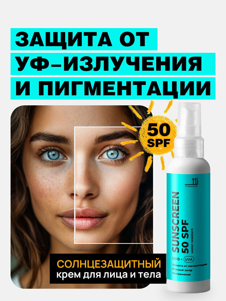 11i "Professional" Солнцезащитный крем для лица и тела SPF 50+ интересное: