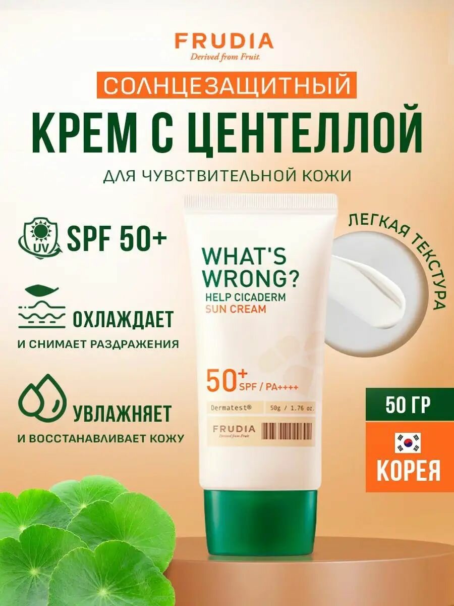 FRUDIA Солнцезащитный крем What's Wrong с центеллой для чувствительной кожи SPF 50, Корея интересное: