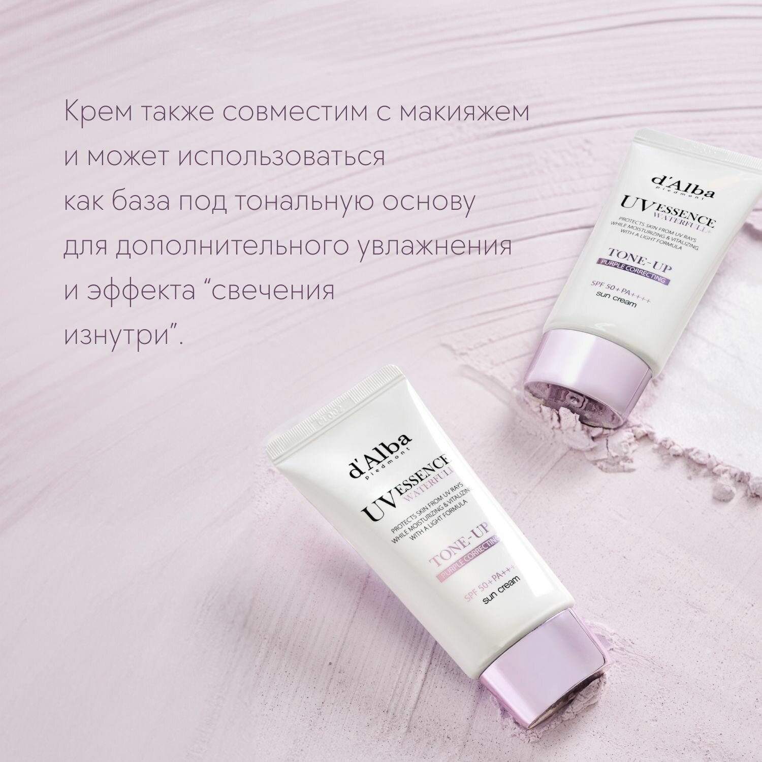 D'Alba Солнцезащитный крем для осветления тона Waterfull Tone-Up Sun Cream (Фиолетовый) SPF50+ 50мл интересное: