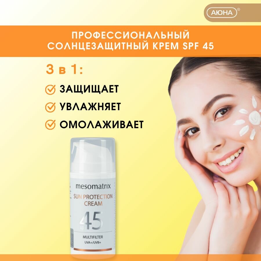 Солнцезащитный крем от загара для лица и тела увлажняющий водостойкий SUN PROTECTION CREAM SPF 45, 100 мл Mesomatrix Professional (Аюна) интересное:
