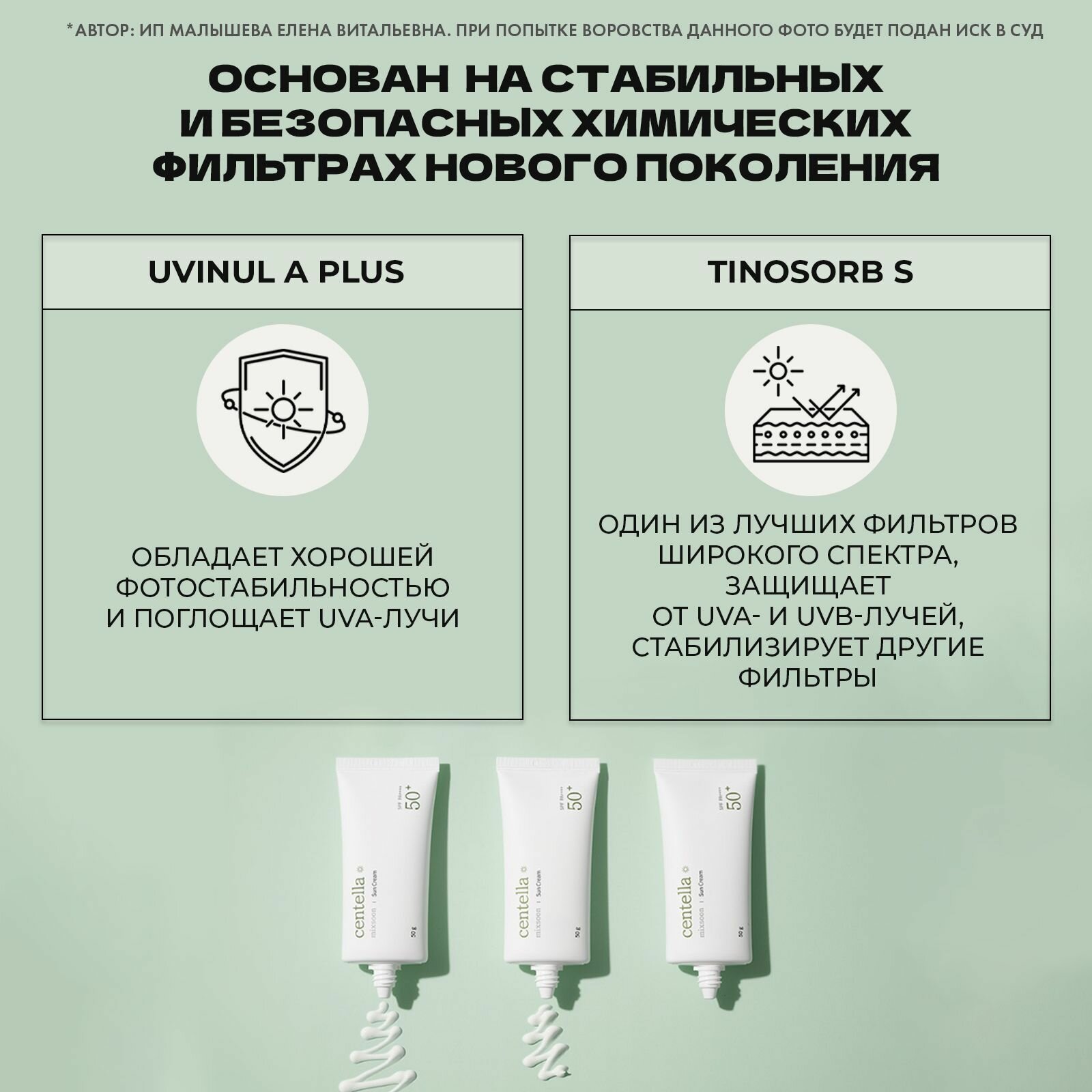 MIXSOON Солнцезащитный крем для лица с центеллой Centella Sun Cream SPF50 + PA+ + +, Корея 50 г интересное: