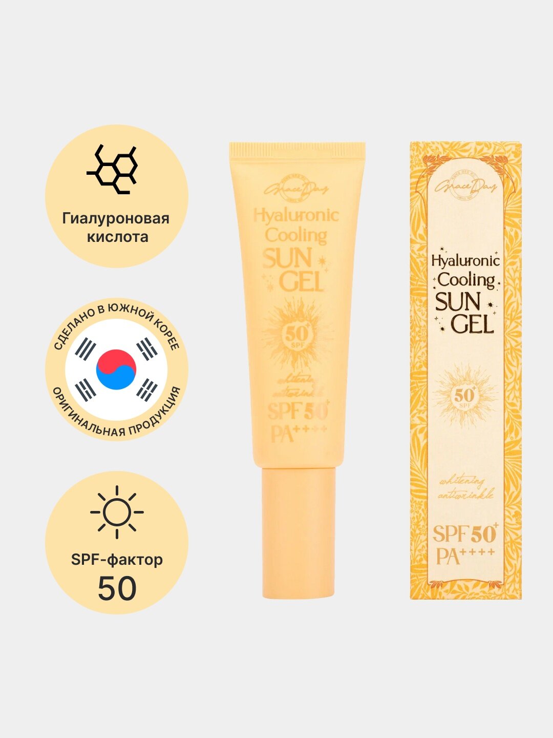Купить Гель Grace Day Hyaluronic Cooling, солнцезащитный, SPF50, для всех типов кожи, 50г