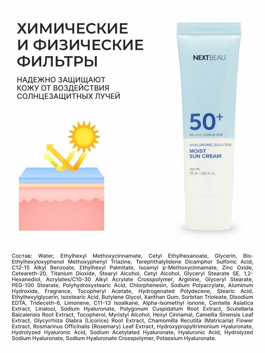 NEXTBEAU Увлажняющий солнцезащитный крем с гиалуроновой кислотой SPF 50+/PA+, 55мл интересное: