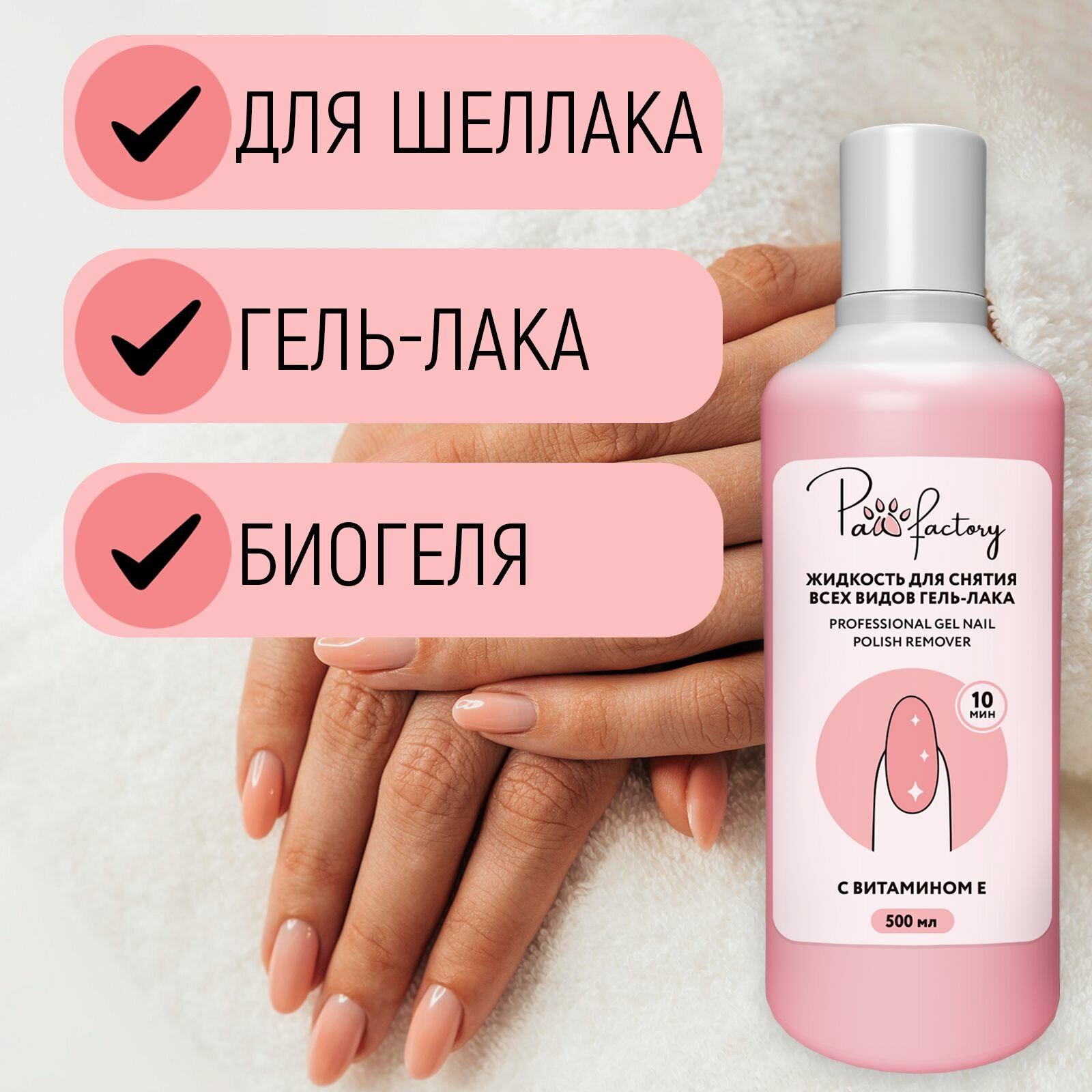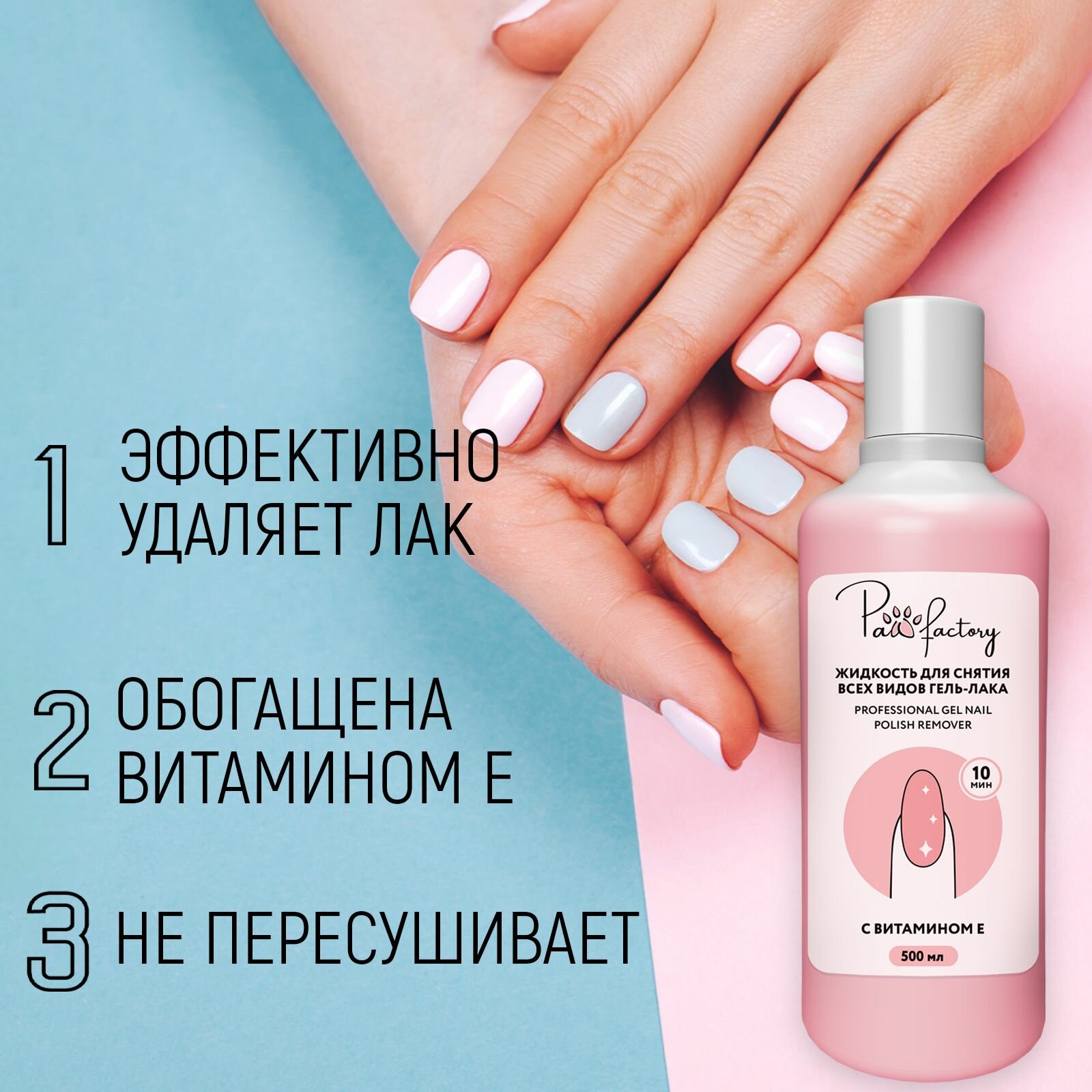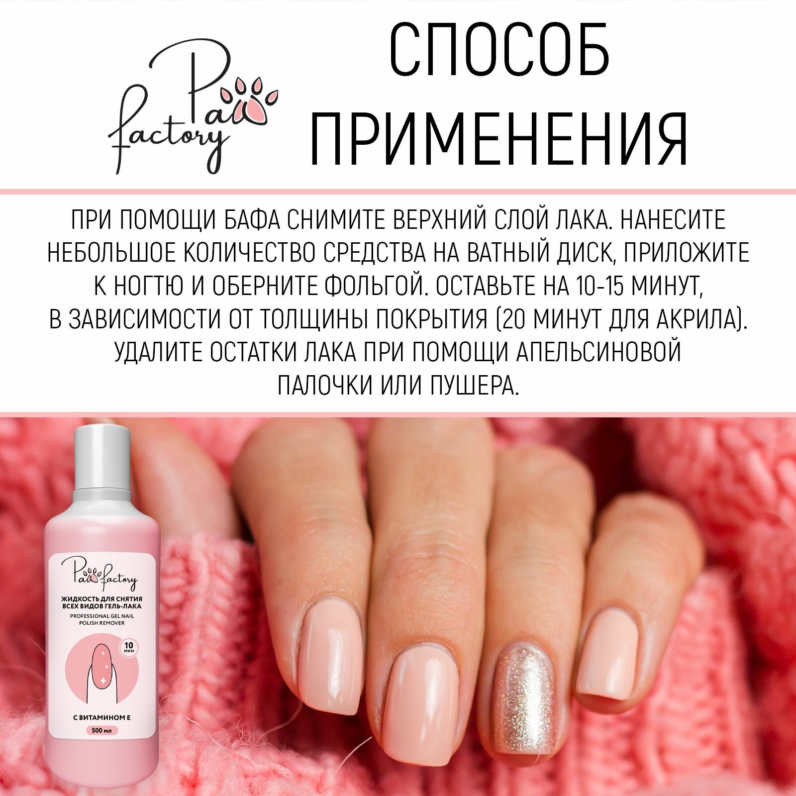 Жидкость для снятия гель-лака PAW FACTORY "Для всех типов ногтей", 500мл интересное: