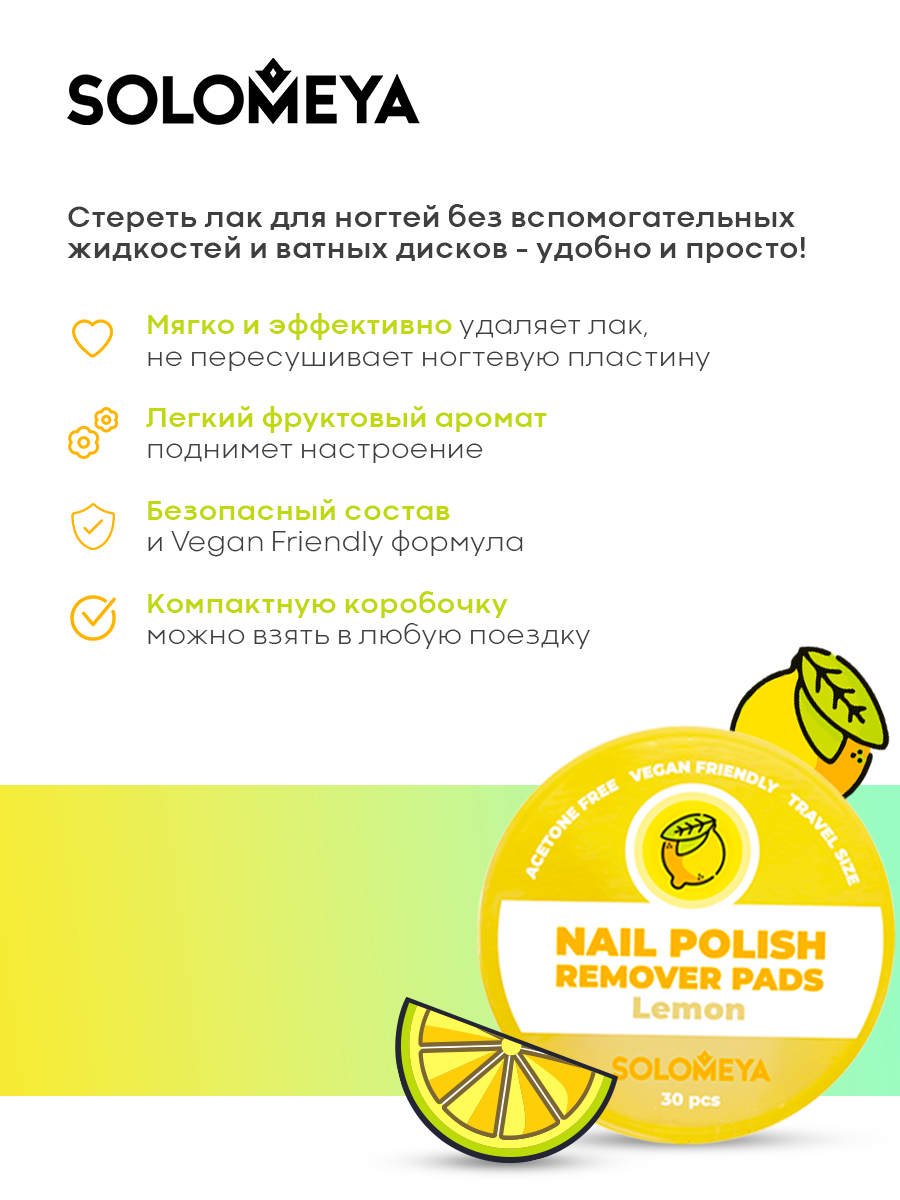 Салфетки Solomeya, для снятия лака, без ацетона, с ароматом лимона, 30 штук интересное: