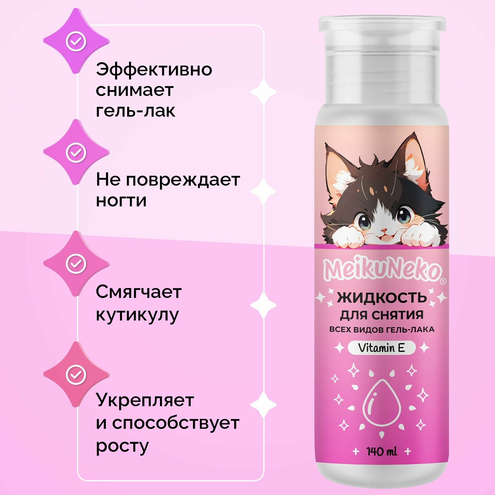 Ниже Вы можете прочитать отзывы на Жидкость Meikuneko, для снятия гель лака, с ацетоном, 140 мл, ознакомится с подробными характеристиками, посмотреть интересные обзоры и фотографии на Жидкость Meikuneko, для снятия гель лака, с ацетоном, 140 мл.