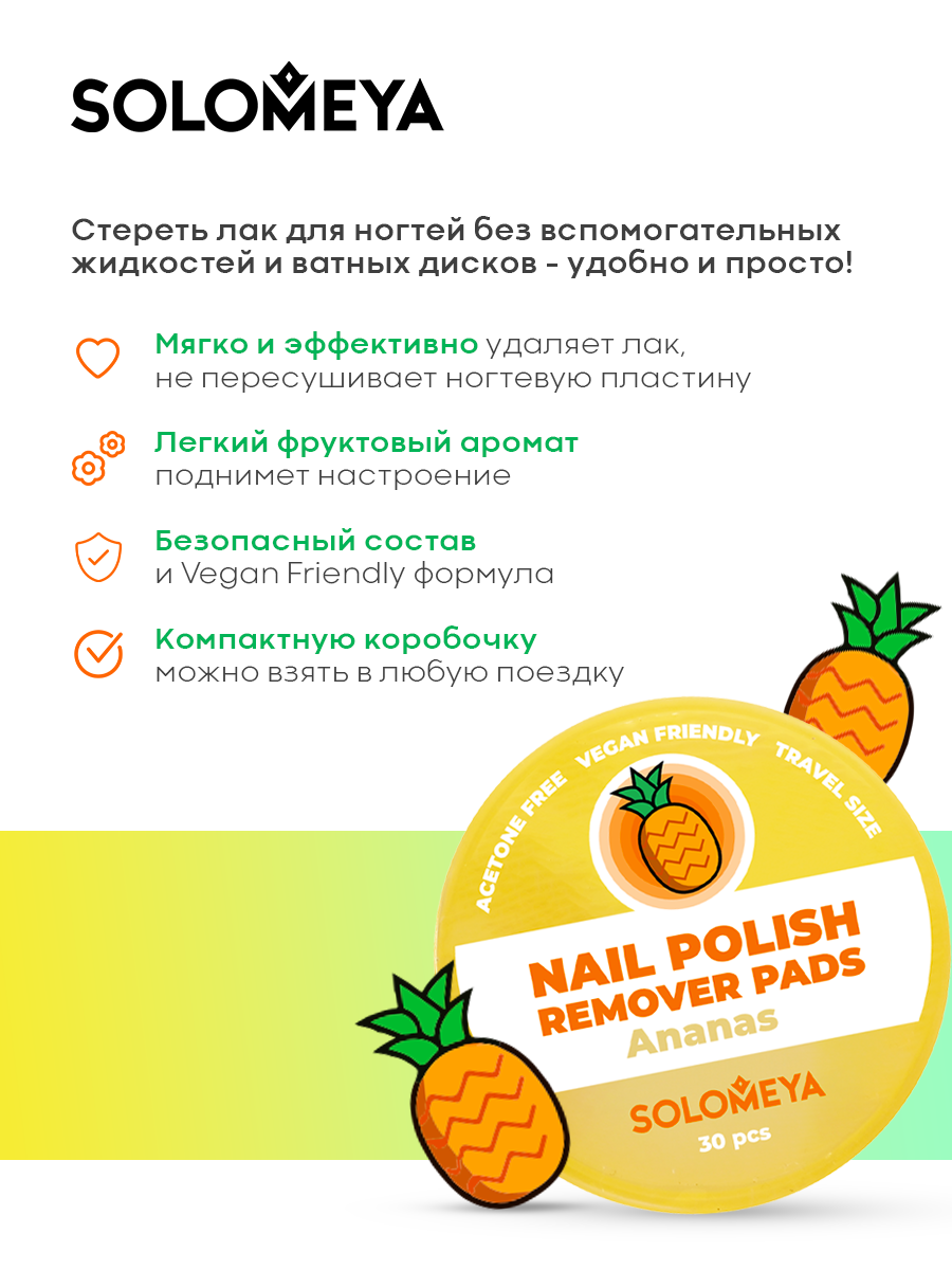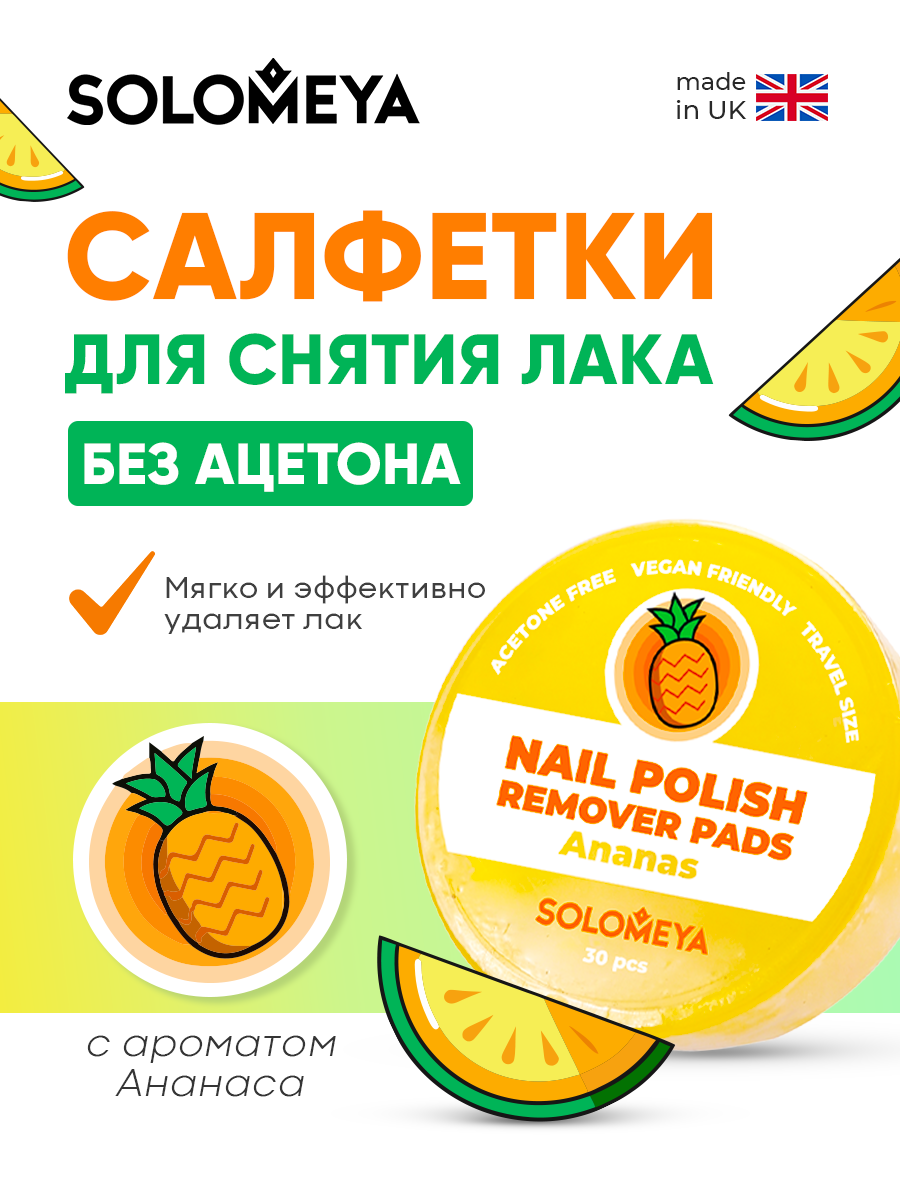 Салфетки Solomeya, для снятия лака , без ацетона, с ароматом ананаса, 30 штук интересное: