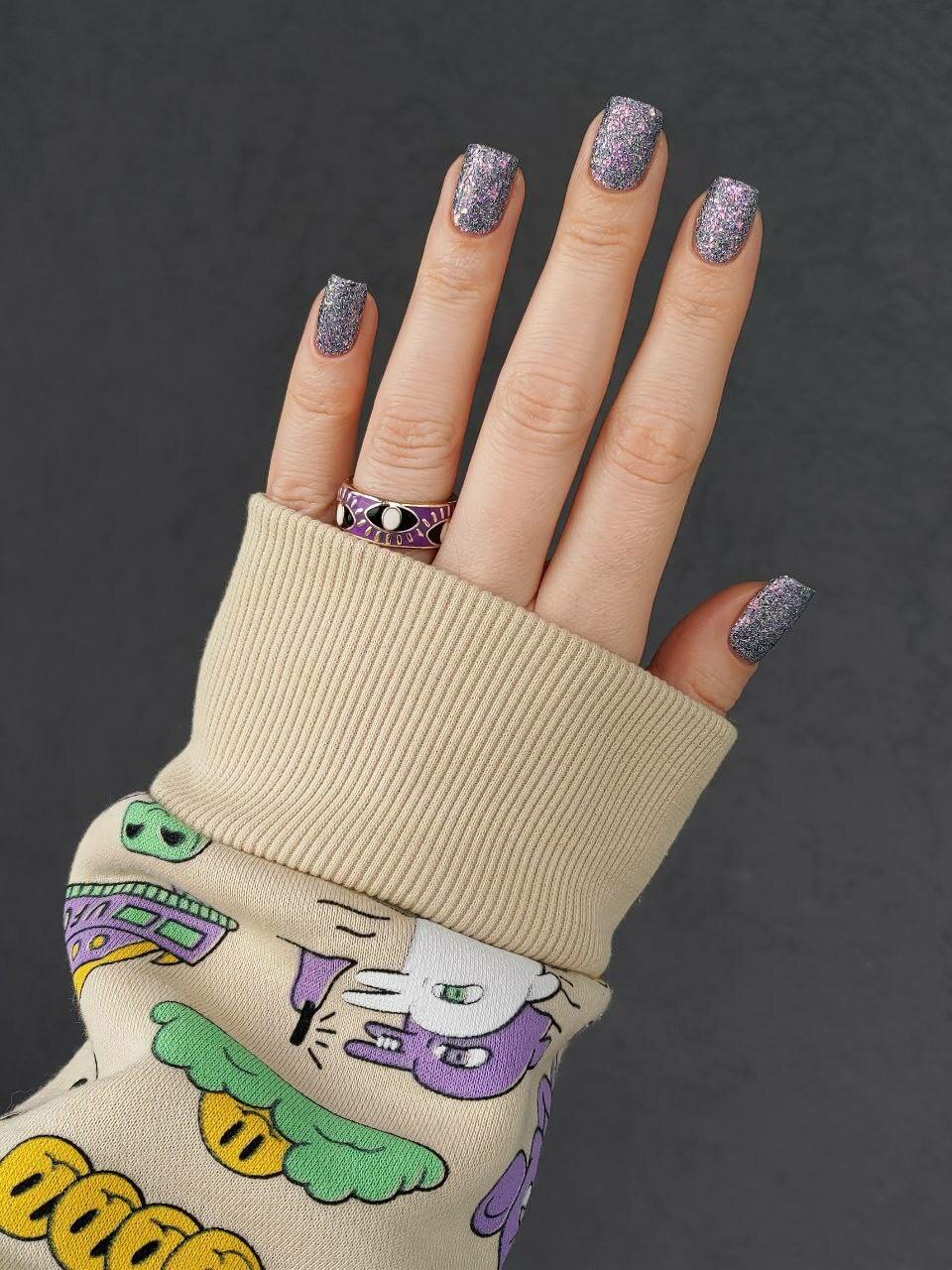 Grattol Color Nail Polish Glitter Starry Night - Лак для ногтей, Фиолетовый, Светоотражающий, без лампы, Халяль, 9 мл
