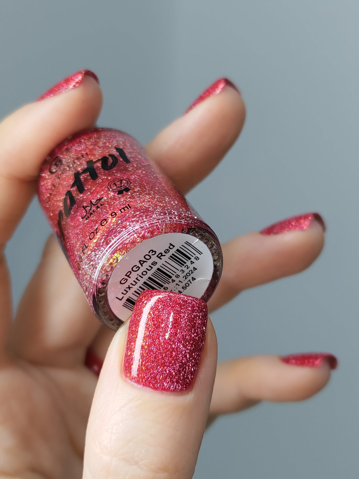 Купить Grattol Color Nail Polish Luxurious Red- Лак для ногтей, Красный, Светоотражающий, без лампы, Халяль, 9 мл