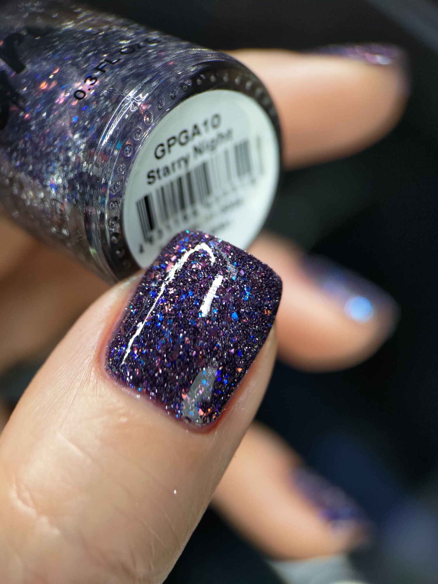 Купить Grattol Color Nail Polish Glitter Starry Night - Лак для ногтей, Фиолетовый, Светоотражающий, без лампы, Халяль, 9 мл