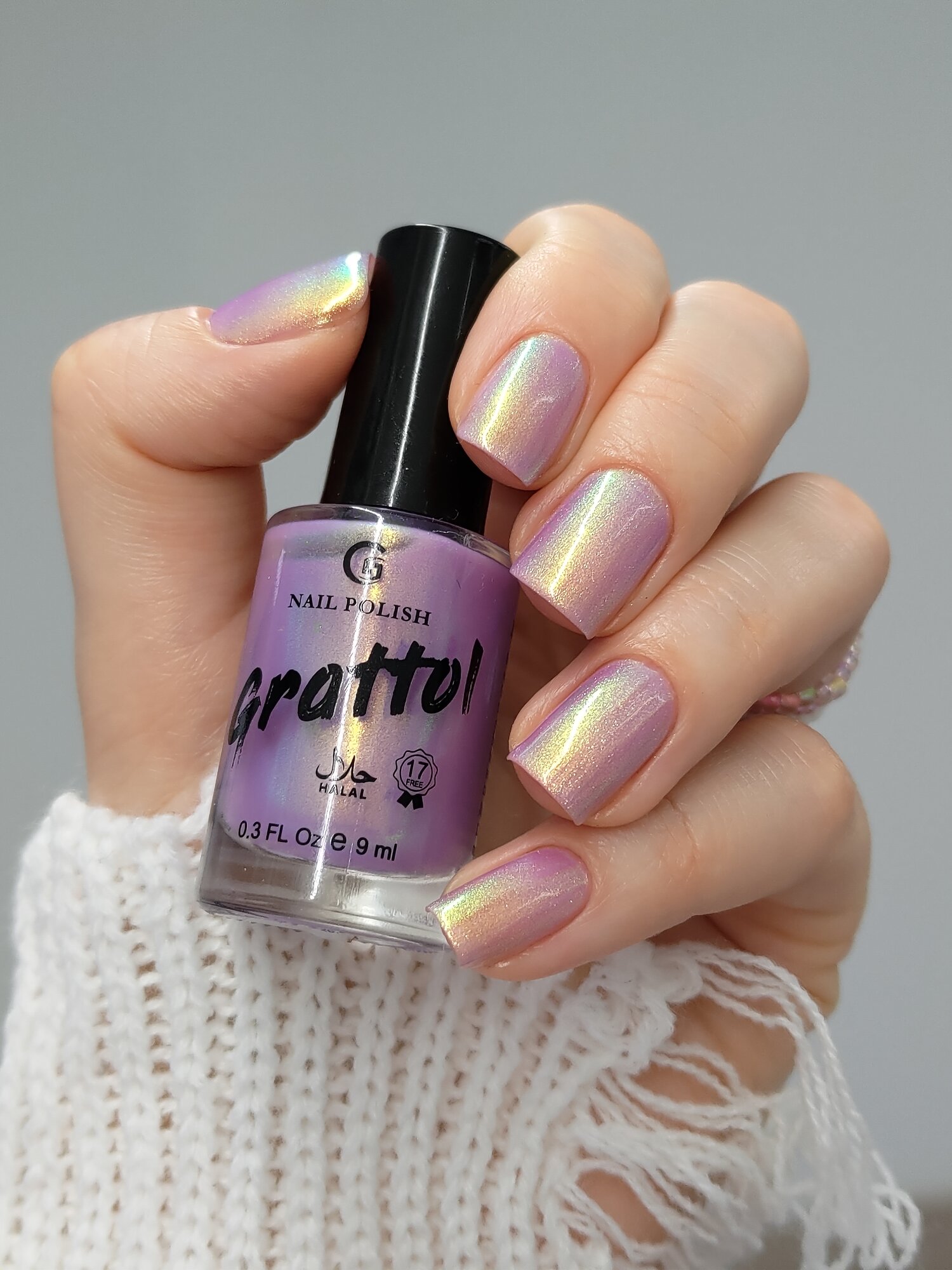 Grattol Color Nail Polish Light Harpy - Лак для ногтей магнитный серый, сушка без лампы, Халяль, 9 мл