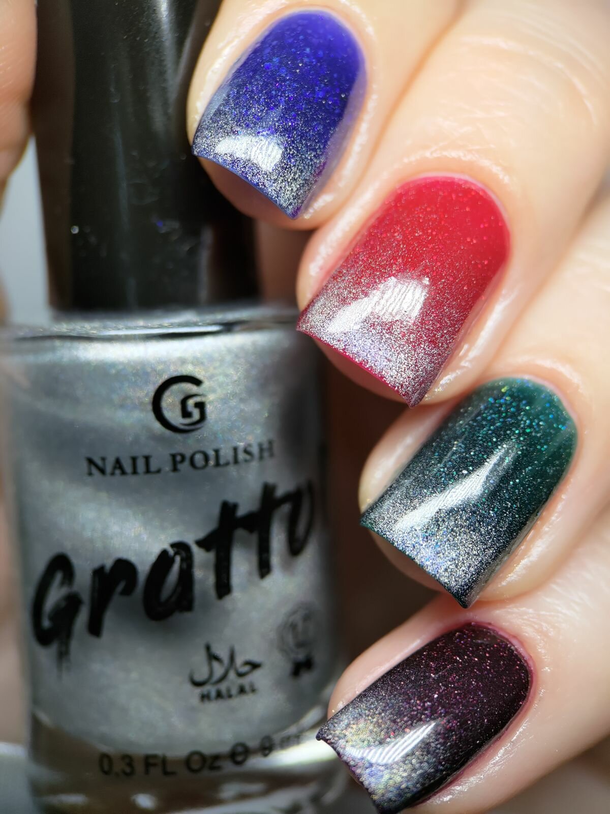 Grattol Color Nail Polish Ruby Harpy - Лак для ногтей магнитный красно-фиолетовый, сушка без лампы, Халяль, 9 мл