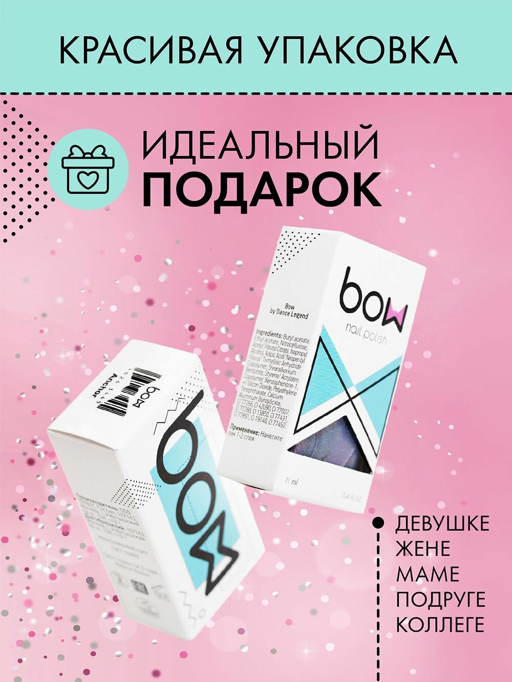 Лак для ногтей Bow Wonderland, розовый, голографический, с блестками, 11 мл.