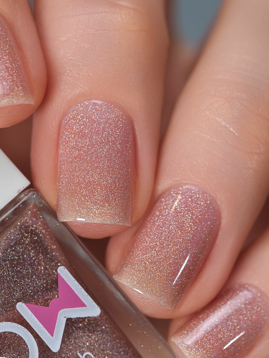 Лак для ногтей Bow Melting Glaciers, розово-бежевый, голографический, с блестками, 11 мл.