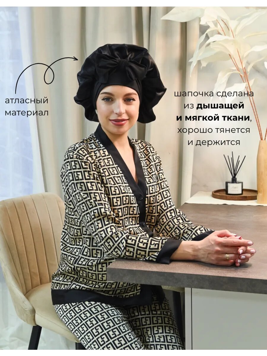 Купить Шапочка для сна WMA STORE, атласная, черная, с бантом, женская, 54-60 р-р