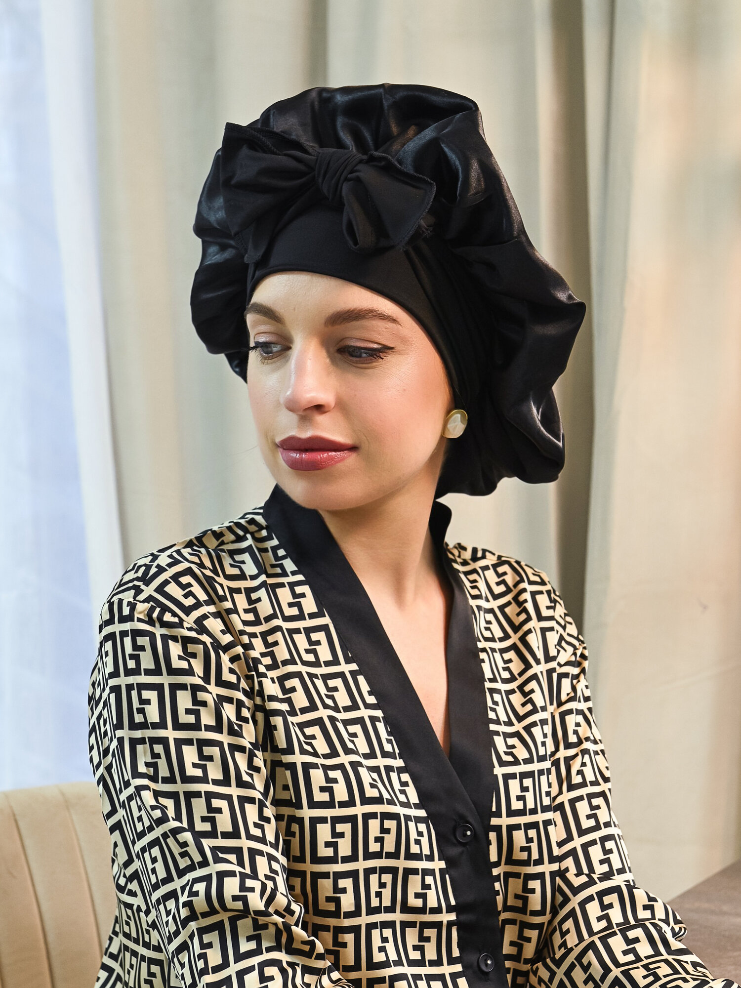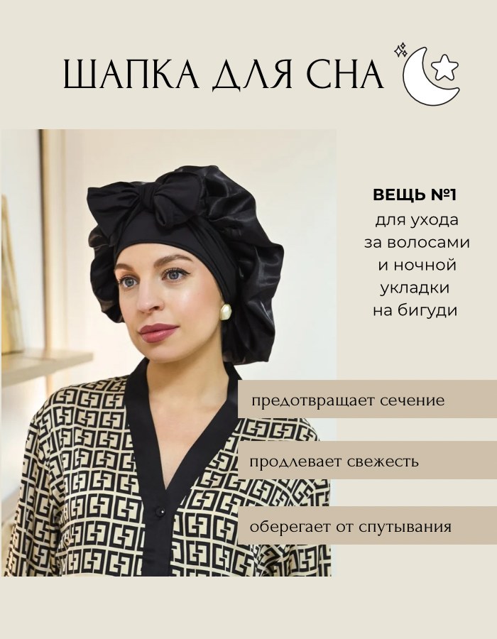 СохранитьШапочка для сна WMA STORE, атласная, черная, с бантом, женская, 54-60 р-р интересное:
