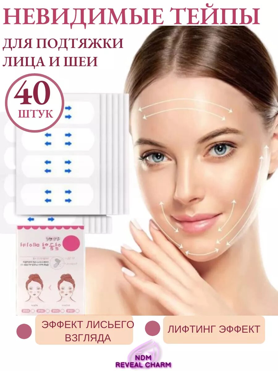 Тейпы для подтяжки лица прозрачные 40 шт. интересное: