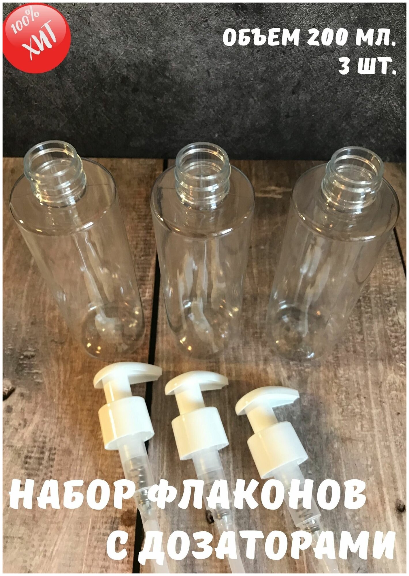 Флакон ПЭТ 200 мл. прозрачный, с помпой дозатором. Бутылочки для геля, шампуня, мыла. интересное: