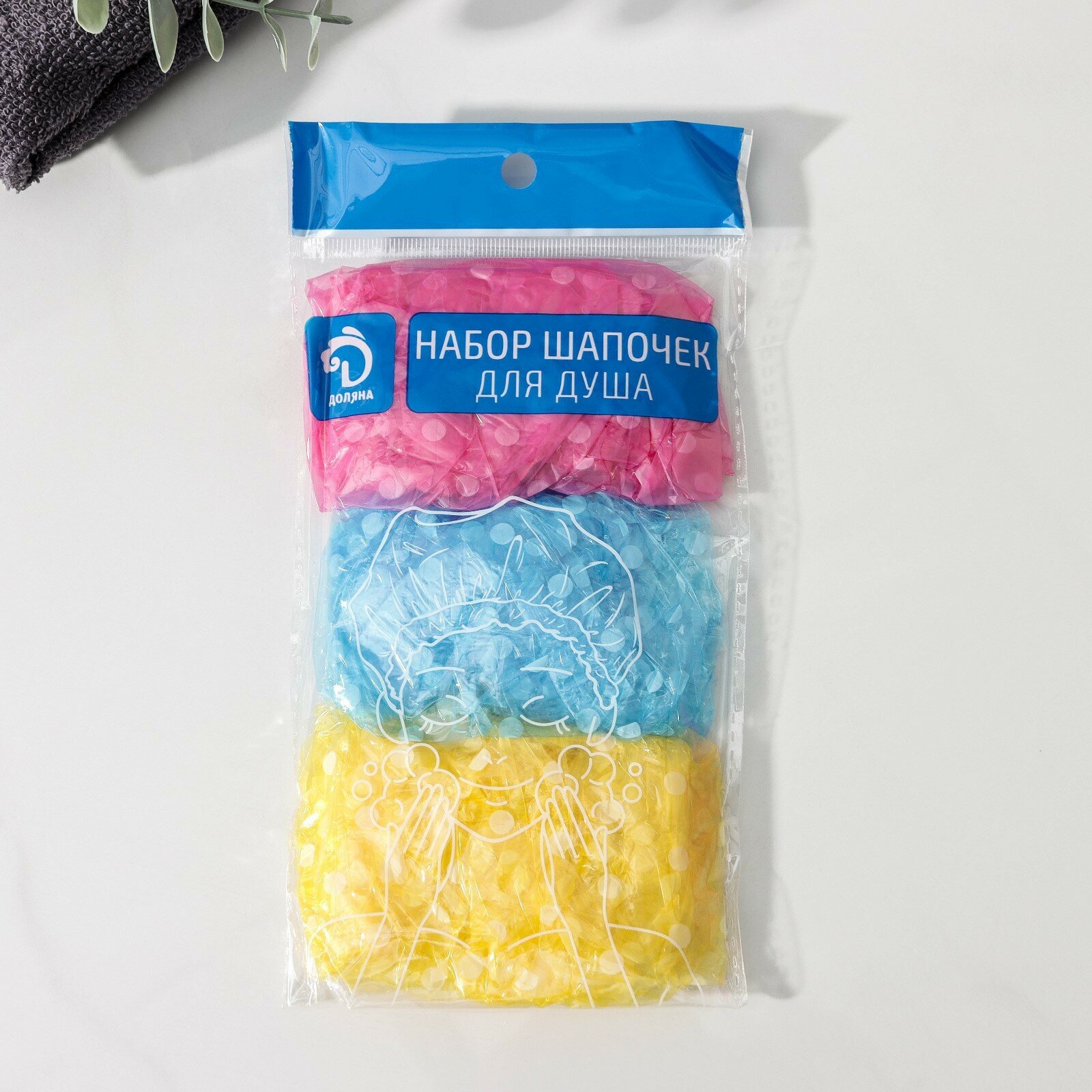 Купить Набор шапочек для душа "Комфорт", 3 шт, полиэтилен, цвета микс