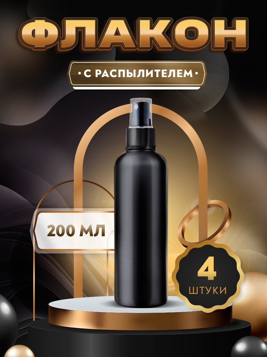Флакон черный с черным кнопочным распылителем для духов, лосьона, антисептика - 200мл. (4 штуки) интересное: