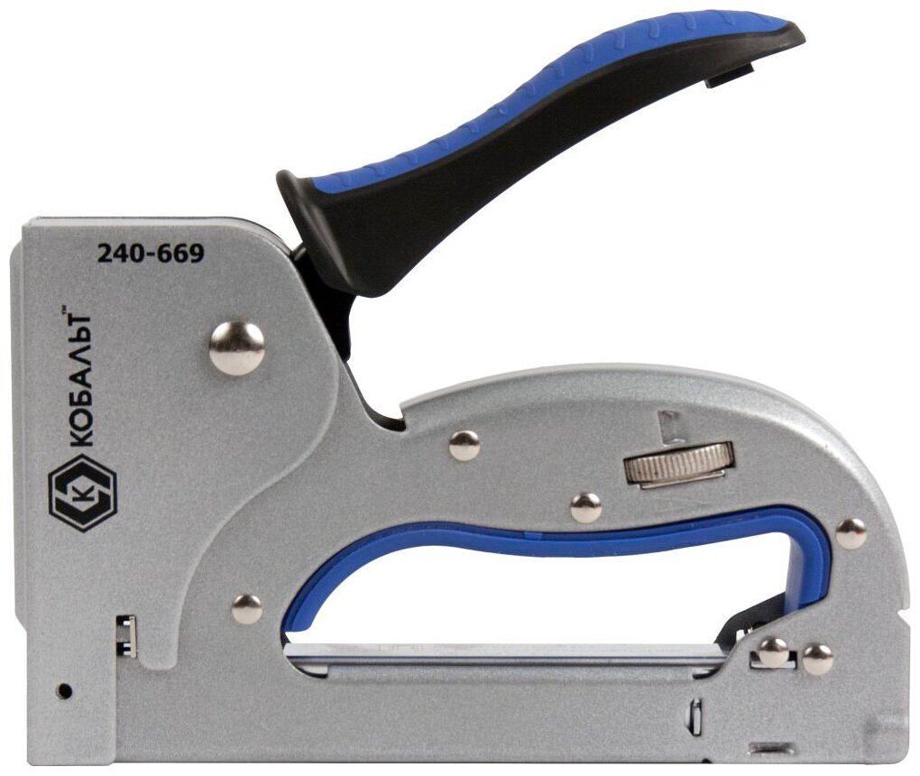 Степлер механический кобальт скобы 4-14 мм, тип 53, регулятор удара (240-669)