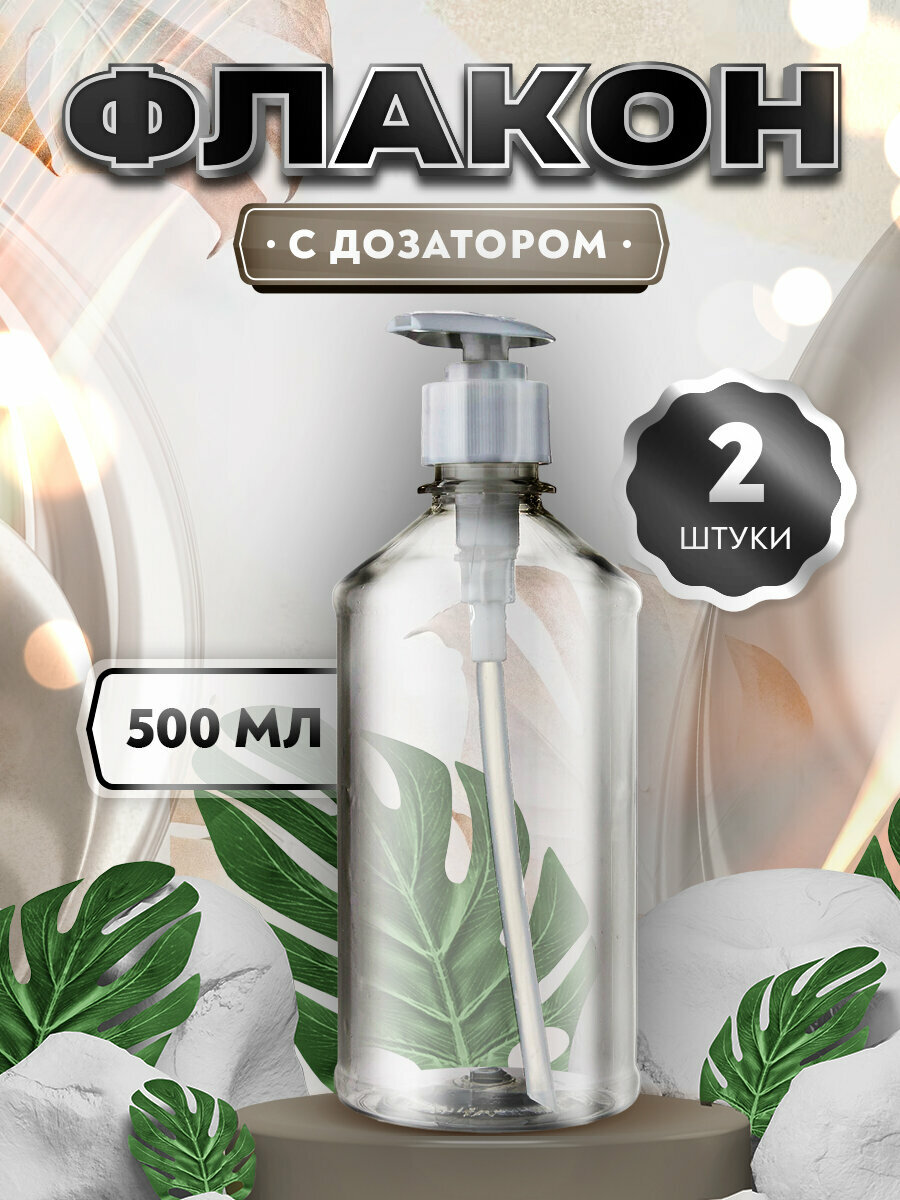 Флакон прозрачный цилиндрический с белым дозатором для мыла, шампуня, бальзама, геля, крема, масла - 500мл. (2 штуки) интересное: