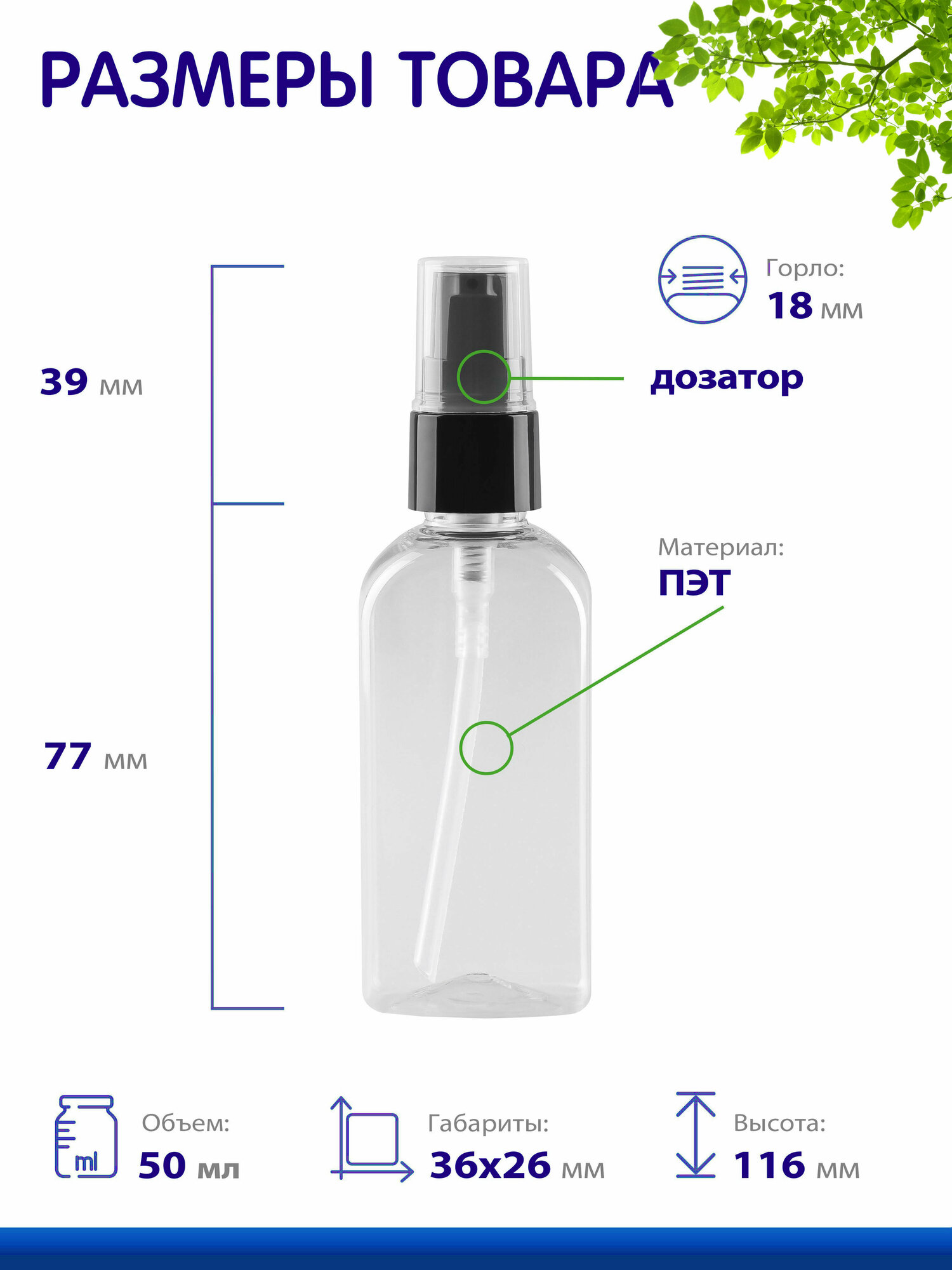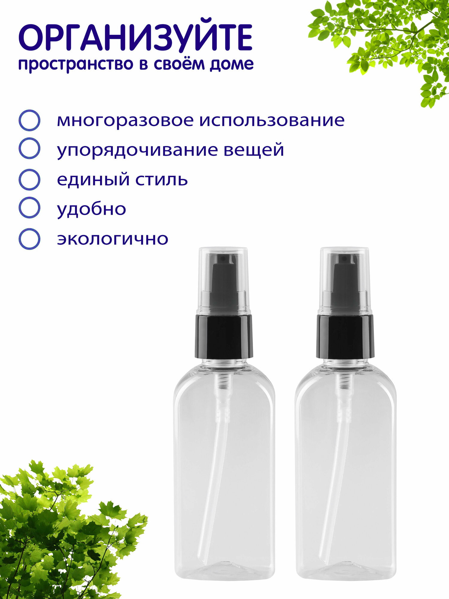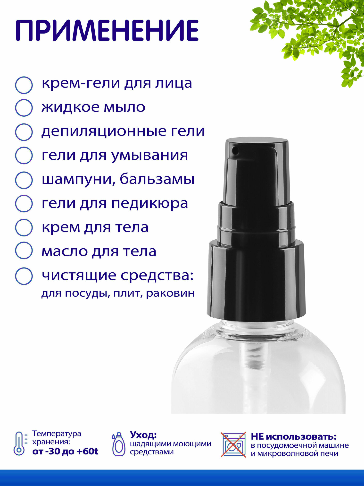 Флакон прозрачный с дозатором для крема, 50 мл, 2 шт. интересное: