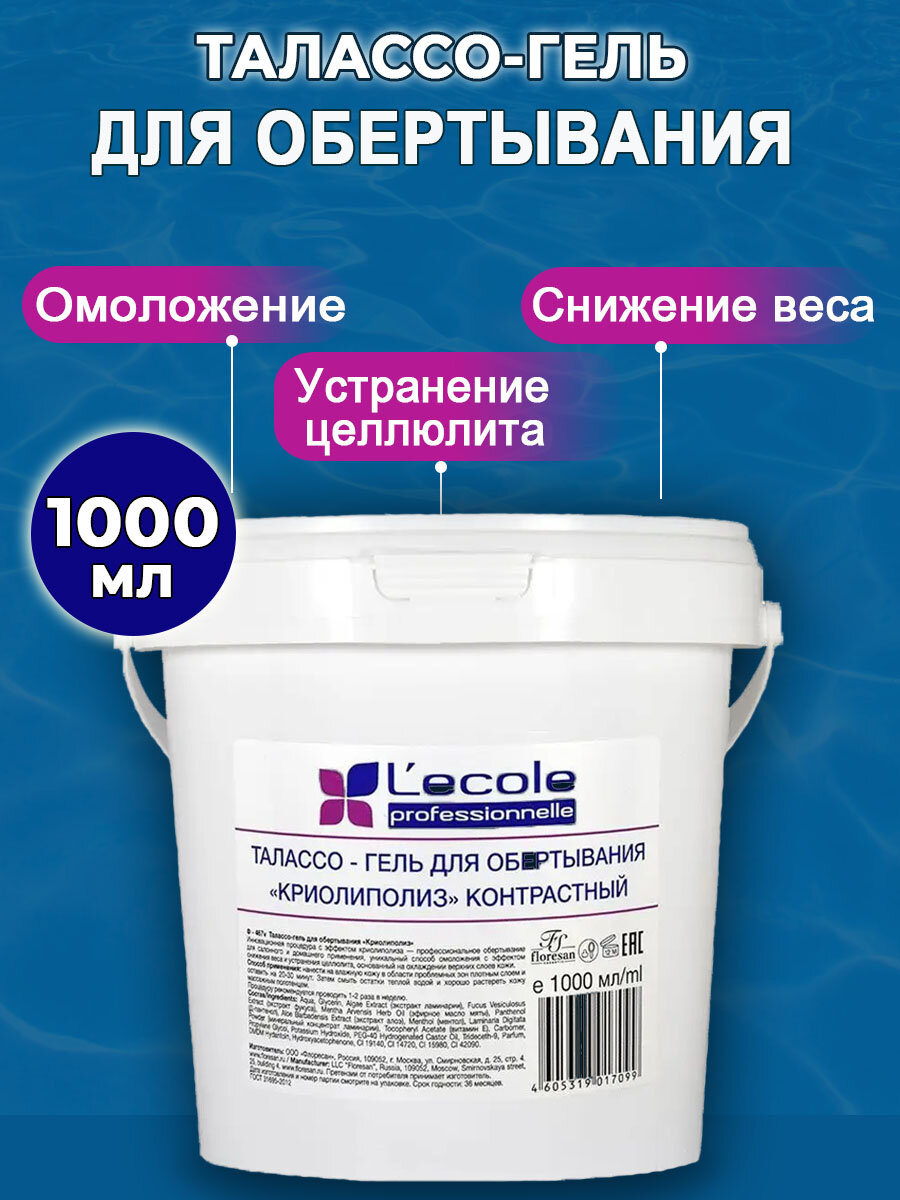 Floresan Талассо-гель для обертывания Криолиполиз, омоложение, снижение веса, устранение целлюлита,1000 мл интересное: