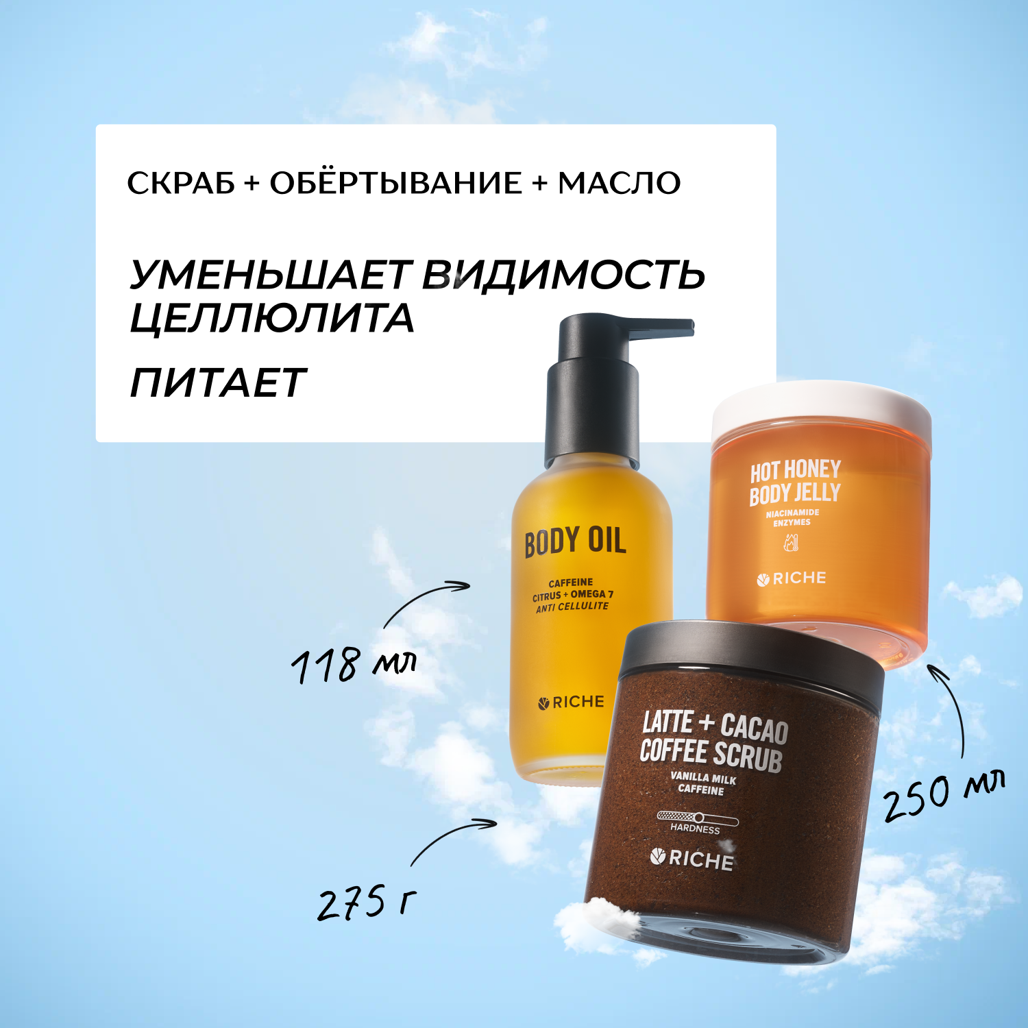 RICHE Набор для тела: скраб Латте-Какао + согревающее обёртывание + антицеллюлитное масло интересное: