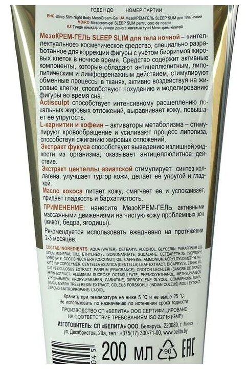 Белита mezoкрем-гель для тела sleep slim ночной 200мл интересное: