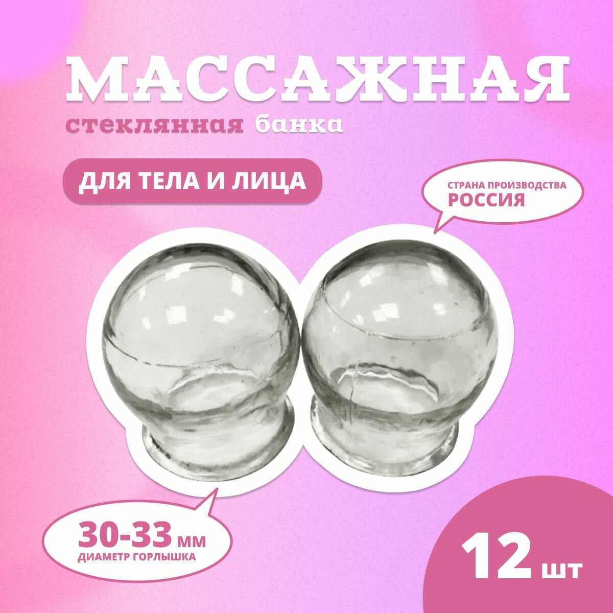 Банка стеклянная, массажная, 30-33 мм, комплект - 12 штук интересное: