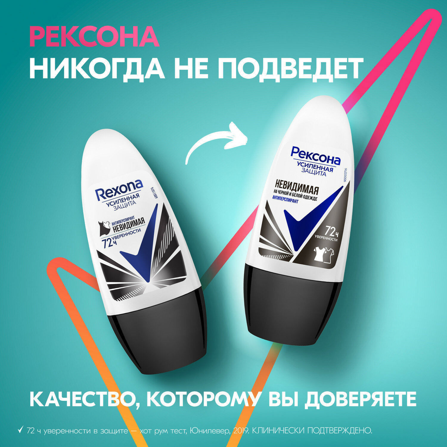 Дезодорант женский шариковый антиперспирант Рексона Невидимая на черной и белой одежде, 50 мл, , интересное: