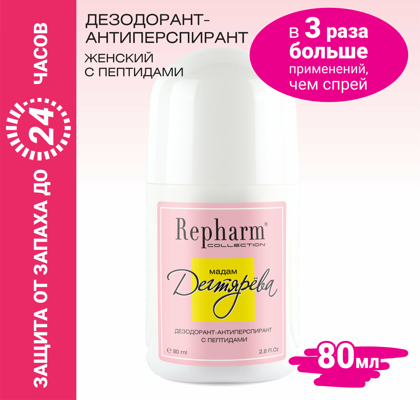 Дезодорант - антиперспирант Repharm COLLECTION Мадам Дегтярева 80 мл с пептидами for women интересное: