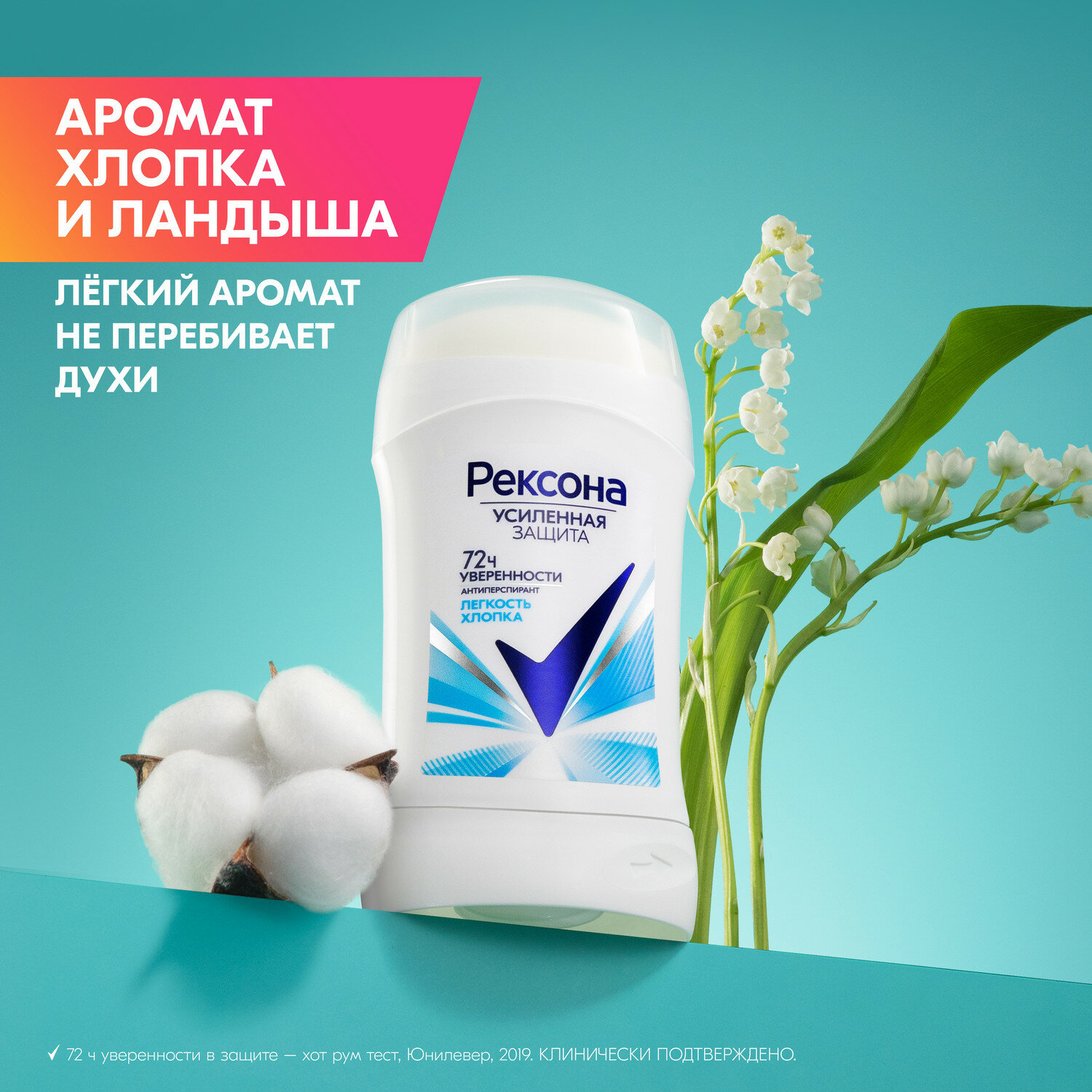 Дезодорант женский твердый стик антиперспирант Рексона Легкость хлопка 40 мл, интересное: