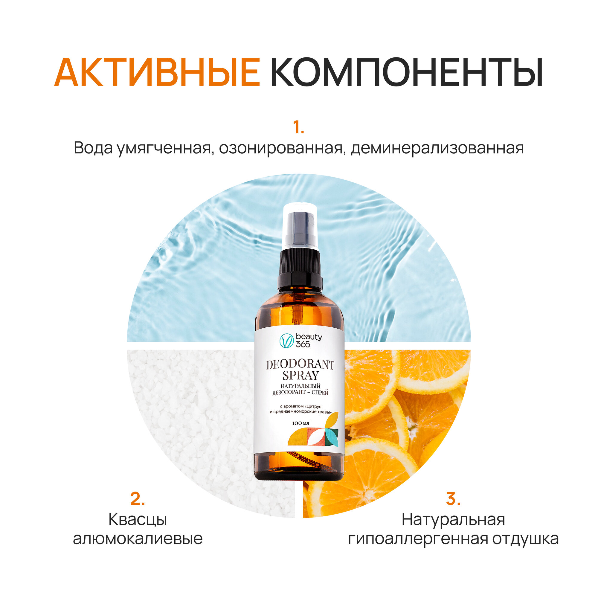 Купить Beauty 365 Дезодорант минеральный натуральный с ароматом Цитрус и средиземноморские травы, 100 мл