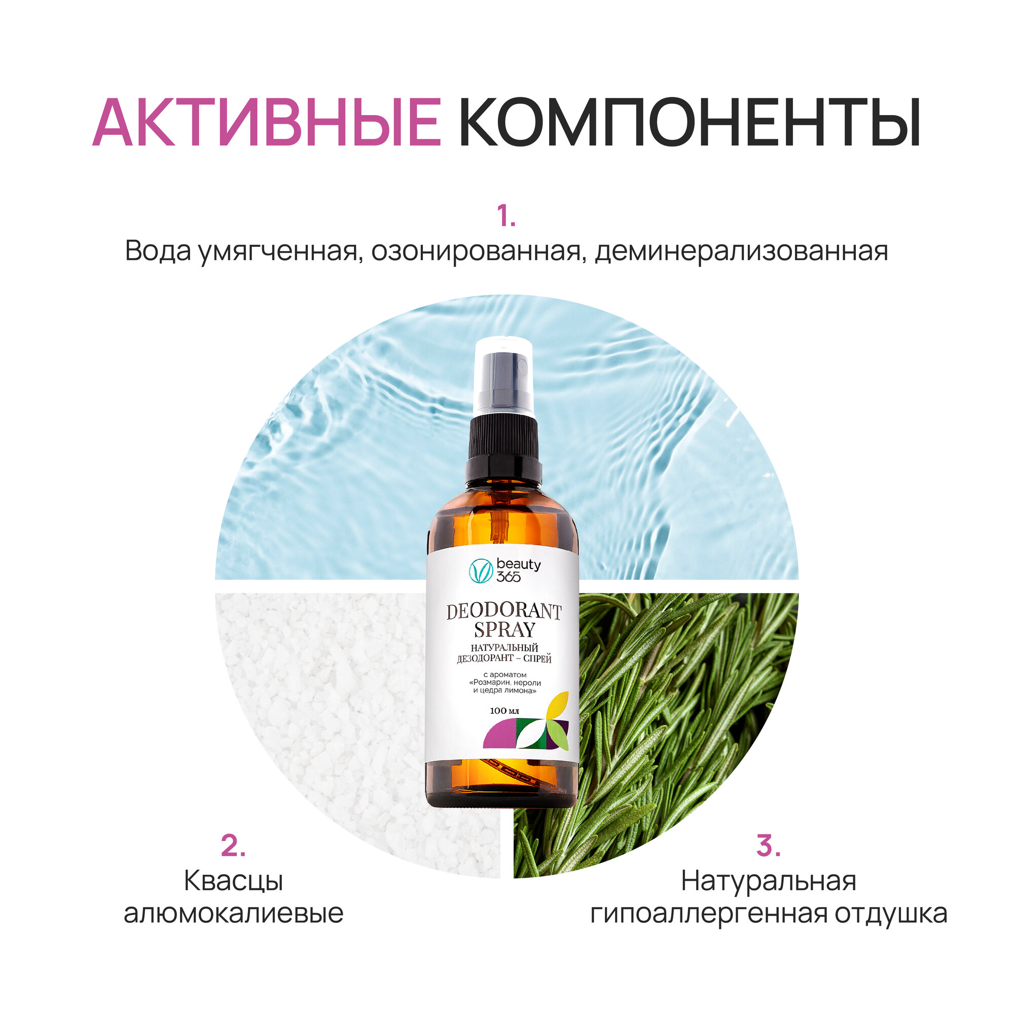 Купить Beauty 365 Дезодорант минеральный натуральный с ароматом Розмарин, нероли и цедра лимона, 100 мл