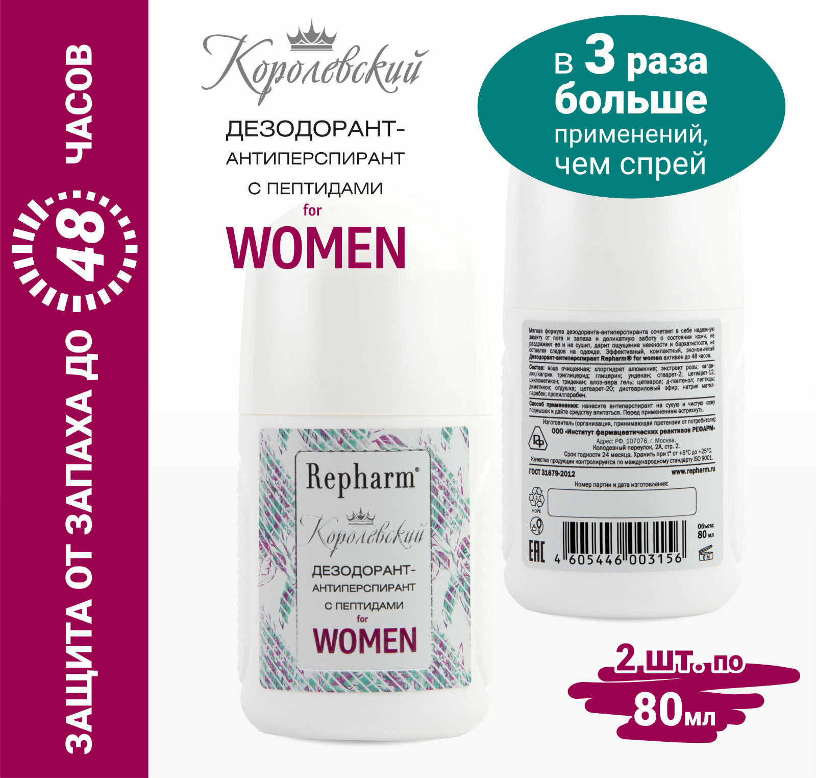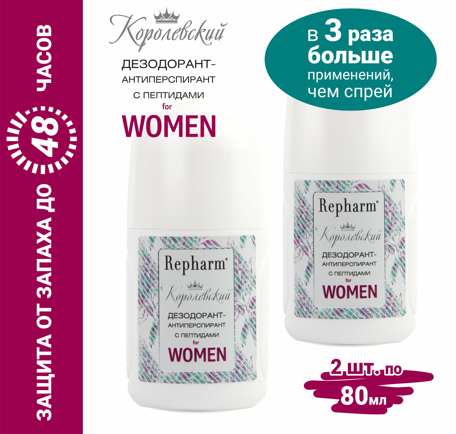 Дезодорант-антиперспирант Repharm Королевский с пептидами for women, 80 мл - 2 шт интересное: