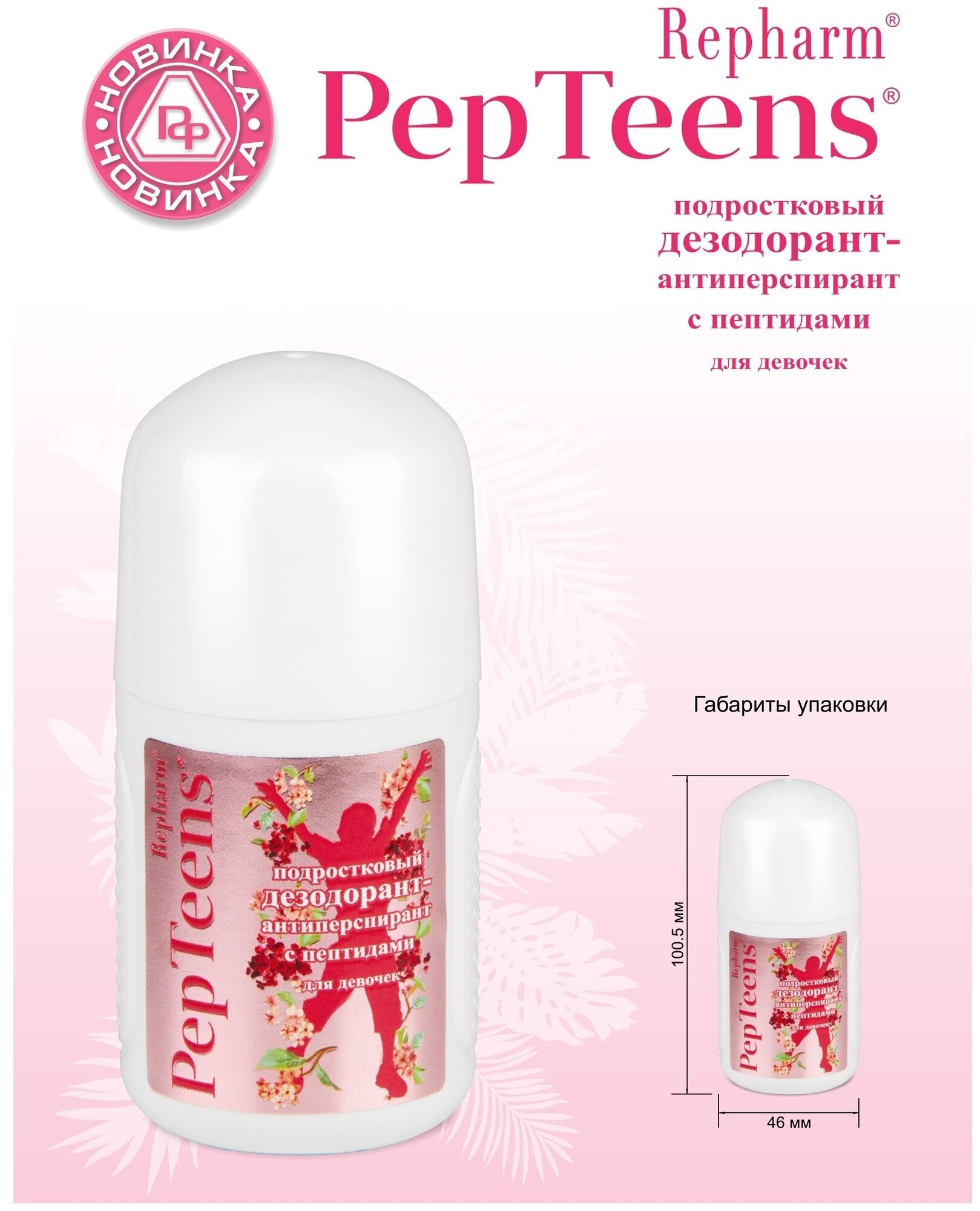 Дезодорант-антиперспирант Repharm PepTeens ® (пептинс) подростковый с пептидами для девочек, 80 мл - 2 шт интересное: