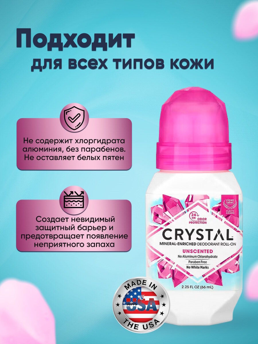 Шариковый дезодорант Crystal Body Deodorant минеральный без запаха, 66 мл интересное: