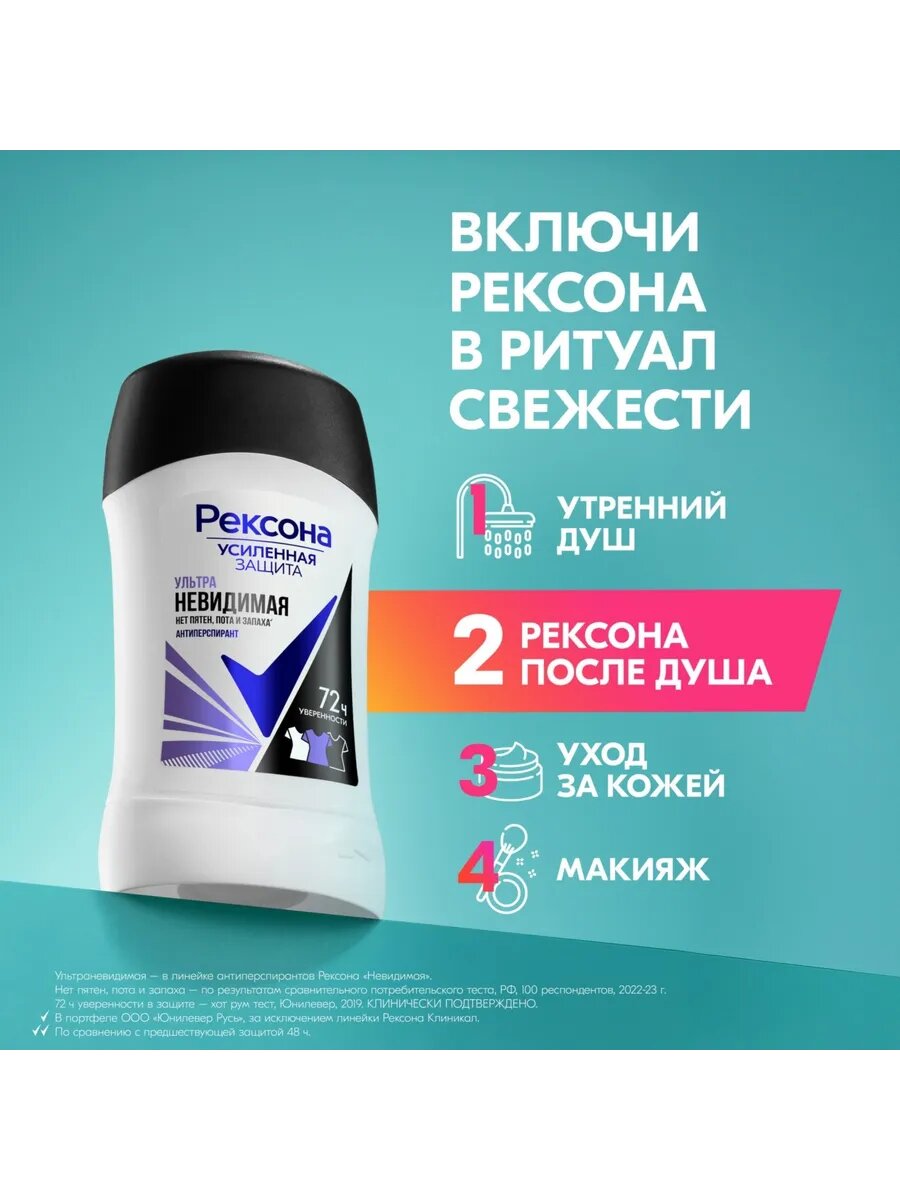 Rexona Дезодорант стик женский Ультраневидимая 40 мл, 2 шт