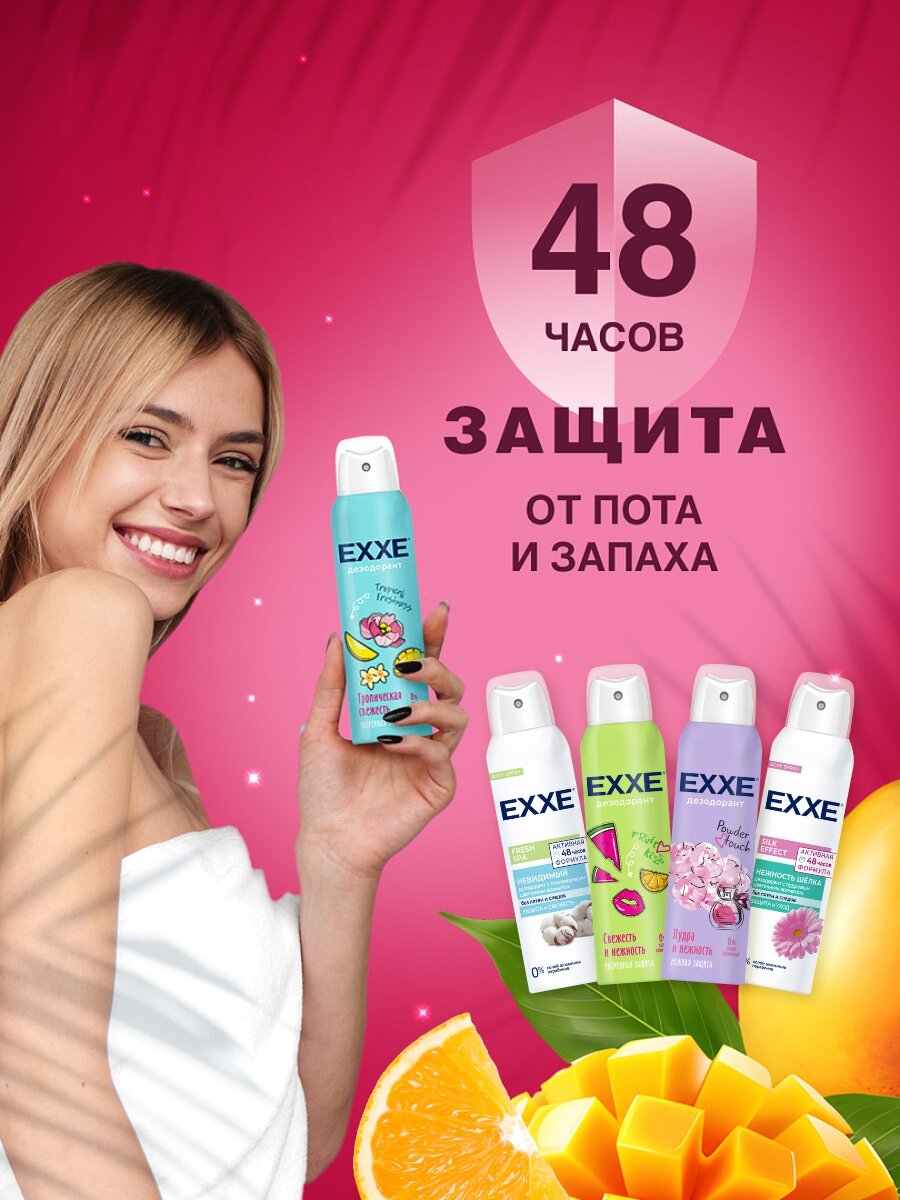Купить Дезодорант женский EXXE спрей набор Fresh SPA Невидимый 150мл + Нежность шелка + Powder touch + Fruit kiss + Tropical freshness 150мл*5шт