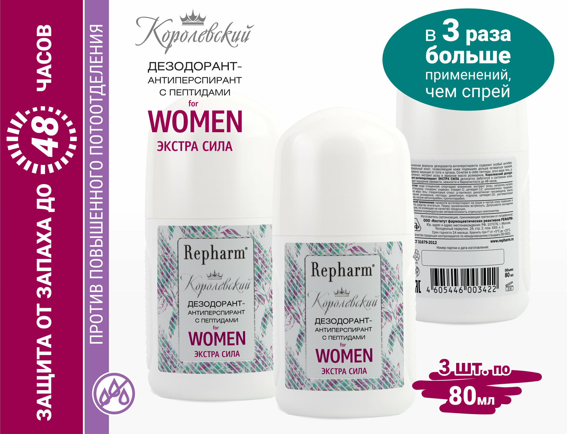 Дезодорант-антиперспирант Repharm Королевский с пептидами for women Экстра сила, 80 мл - 3 шт интересное: