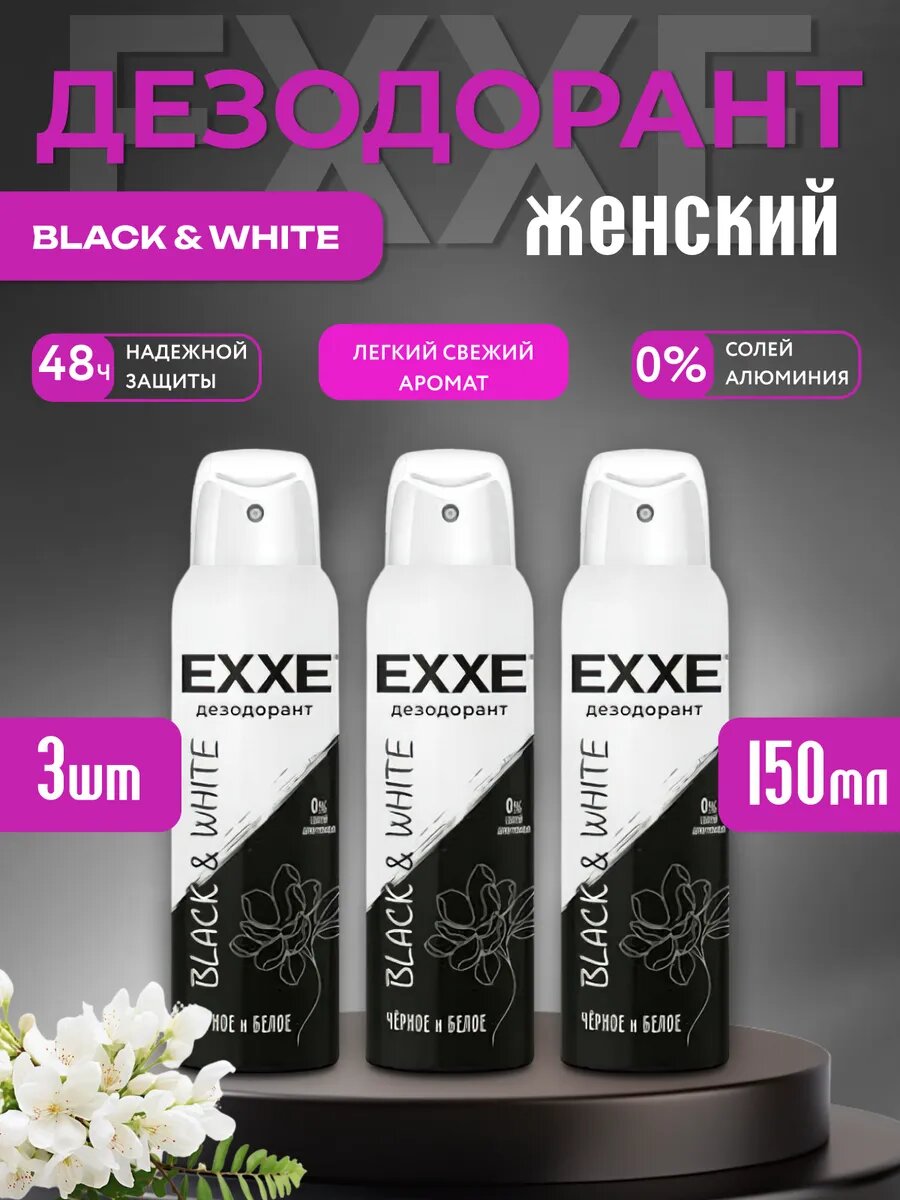 Купить Дезодорант EXXE White&Black, женский, без спирта и солей алюминия, 3 шт