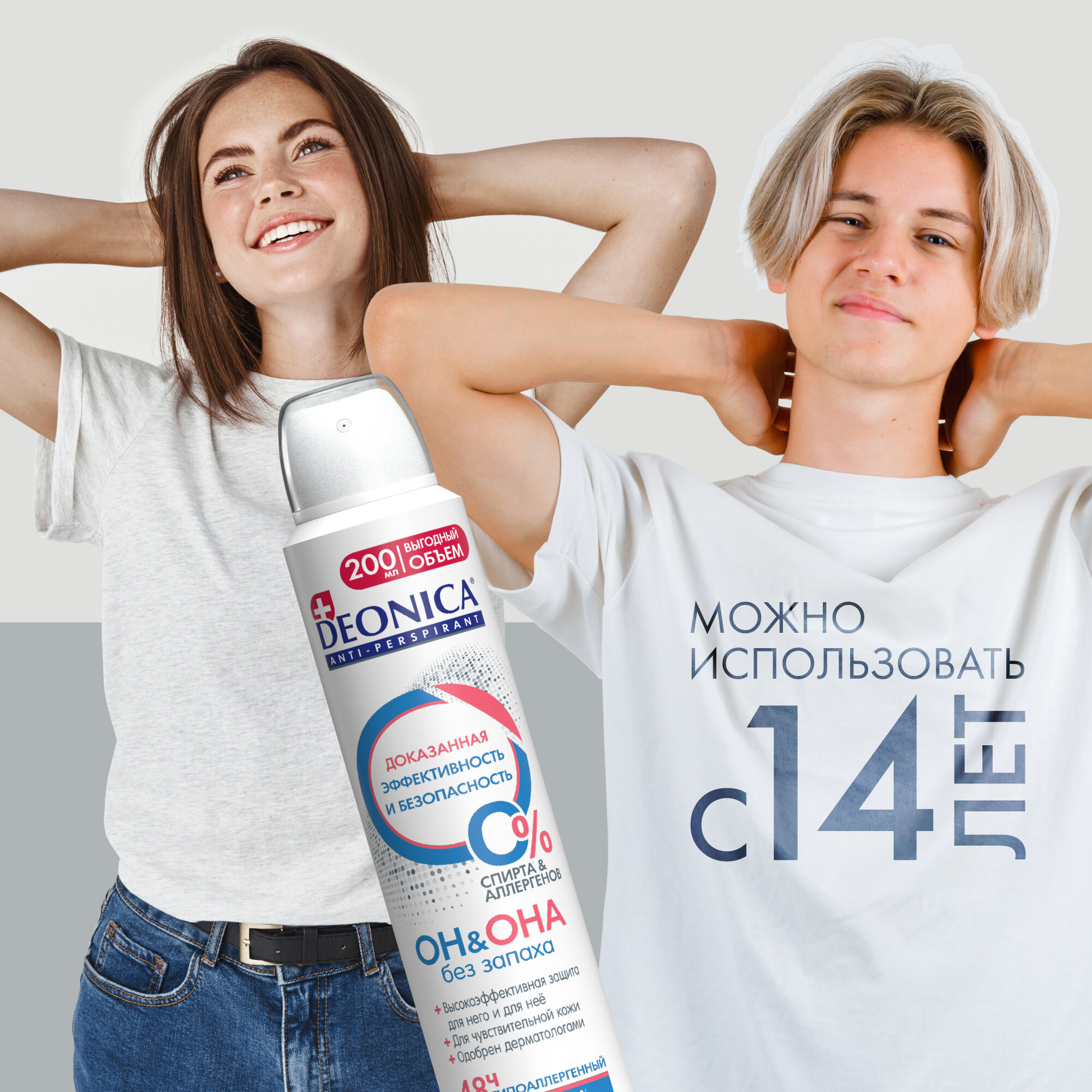 Купить Дезодорант Deonica Антиперспирант "ОН&ОНА". Спрей, 200мл. Без запаха. Не содержит отдушки