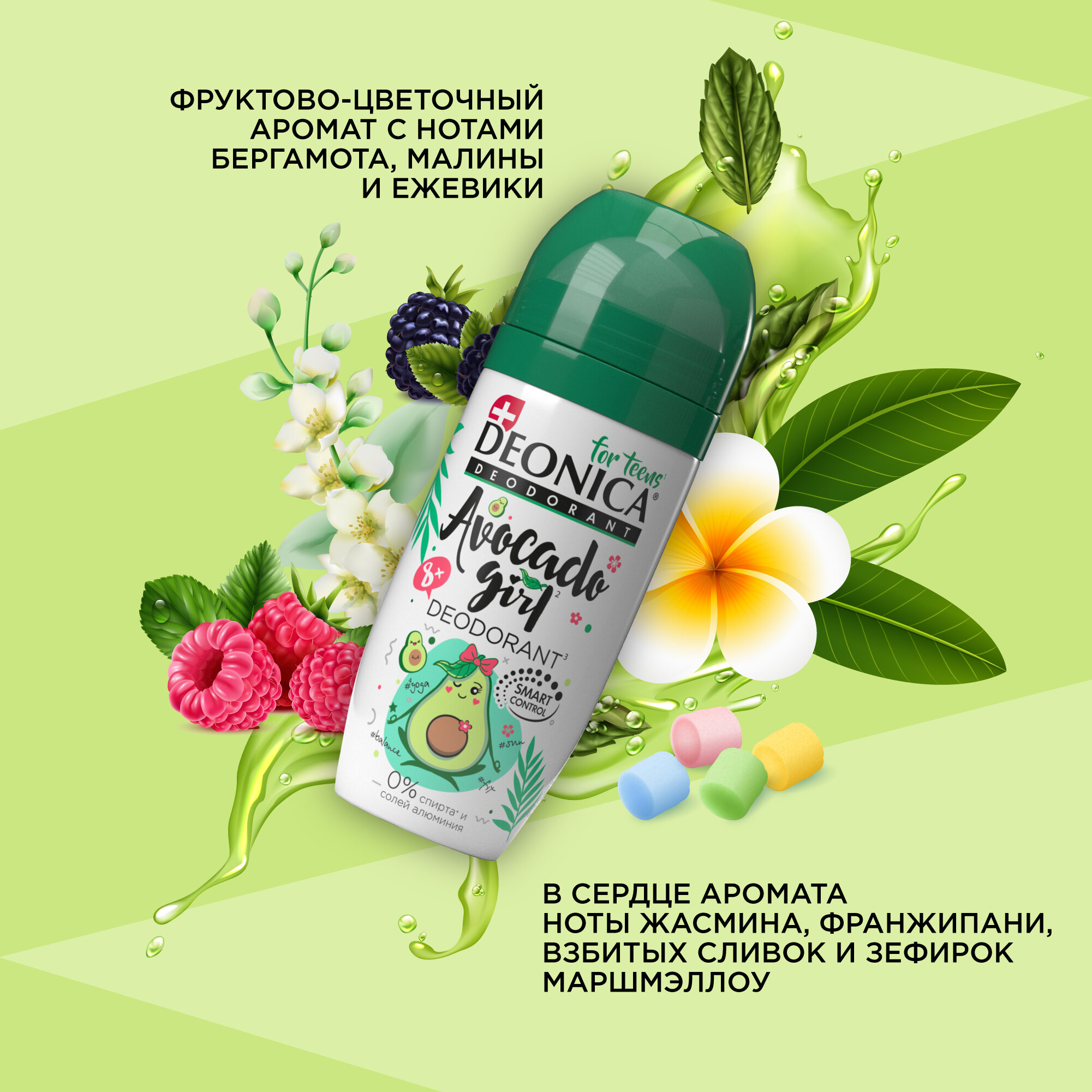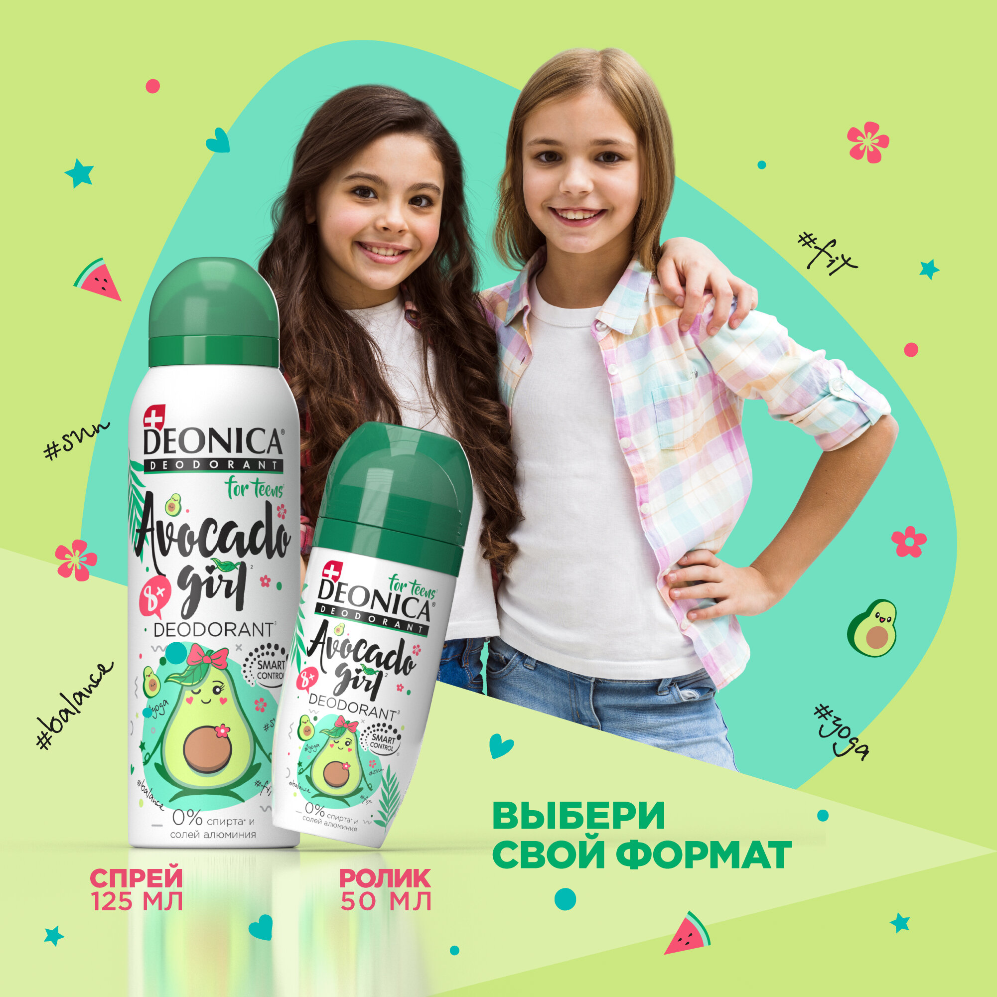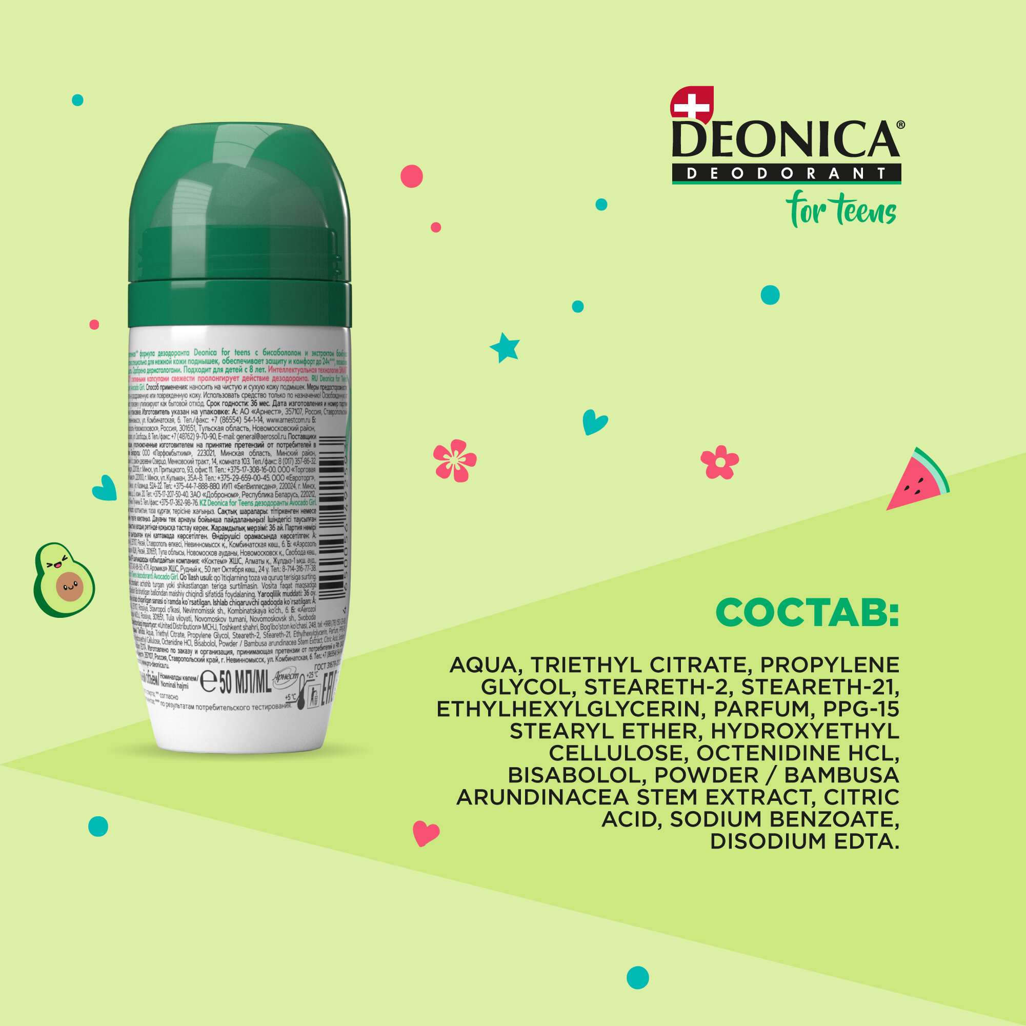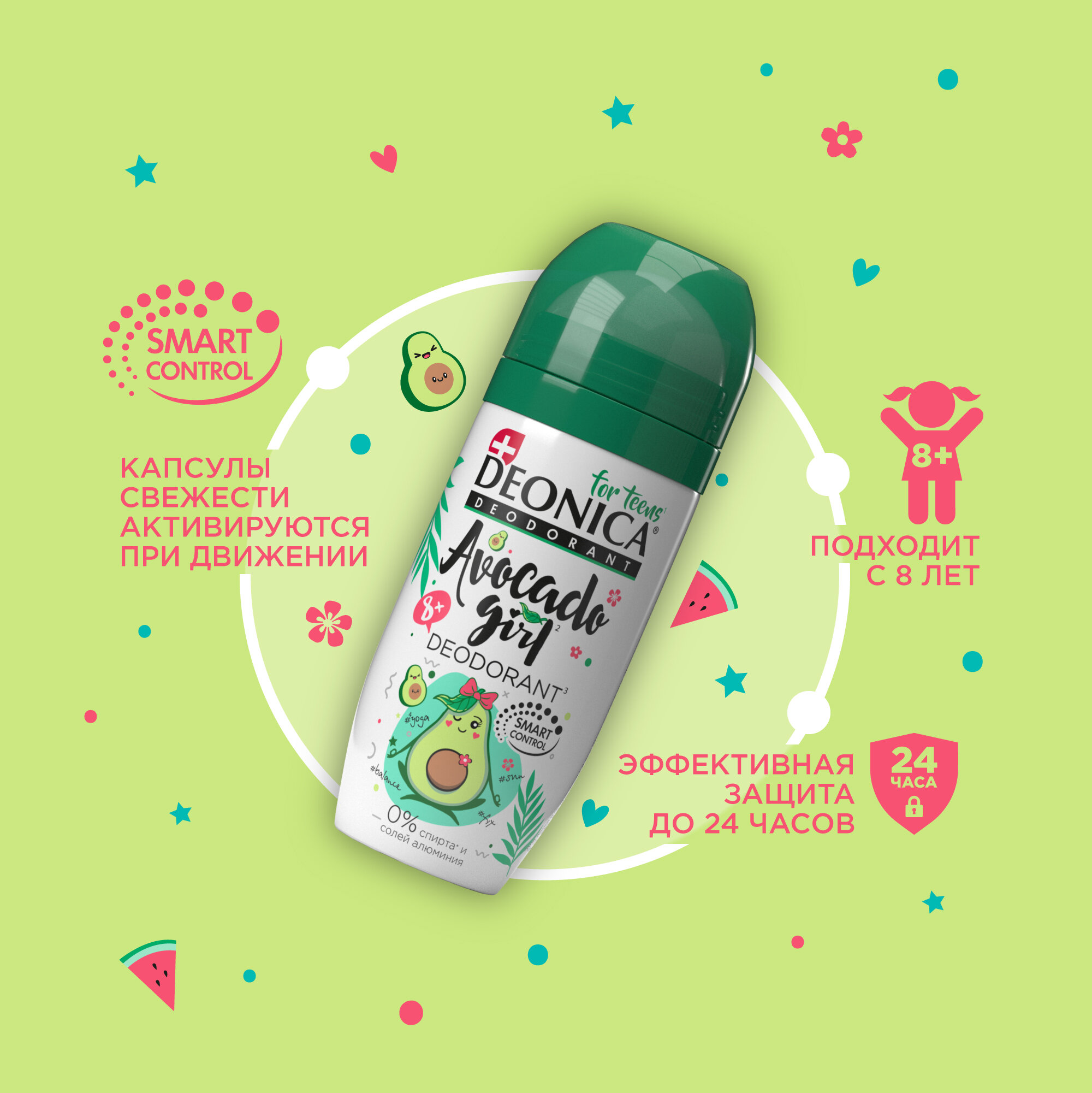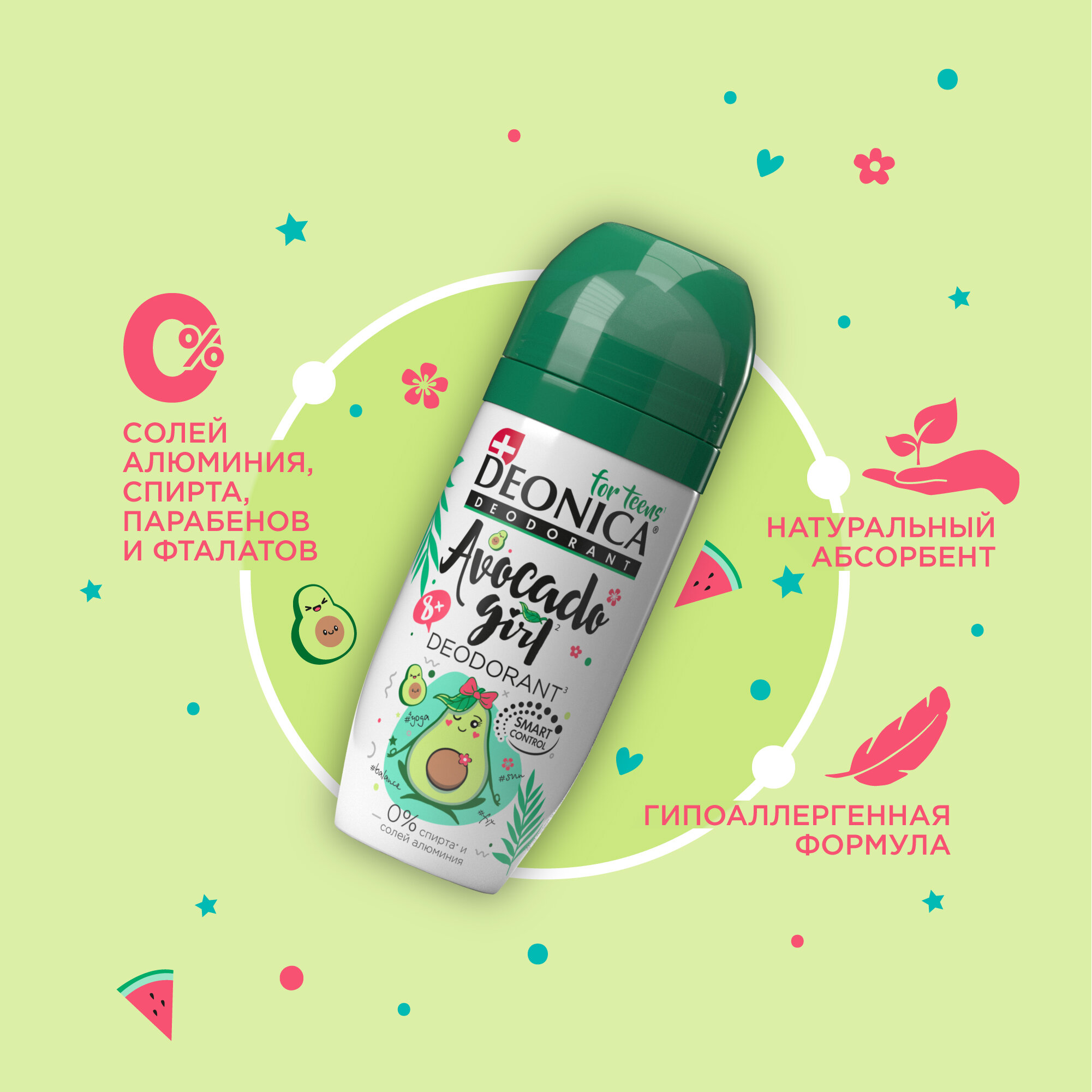 Купить Дезодорант детский Deonica for Teens "Avocado Girl". Ролик, 50 мл. Не содержит солей алюминия, спирта, парабенов. Рекомендован детям от 8 до 14 лет