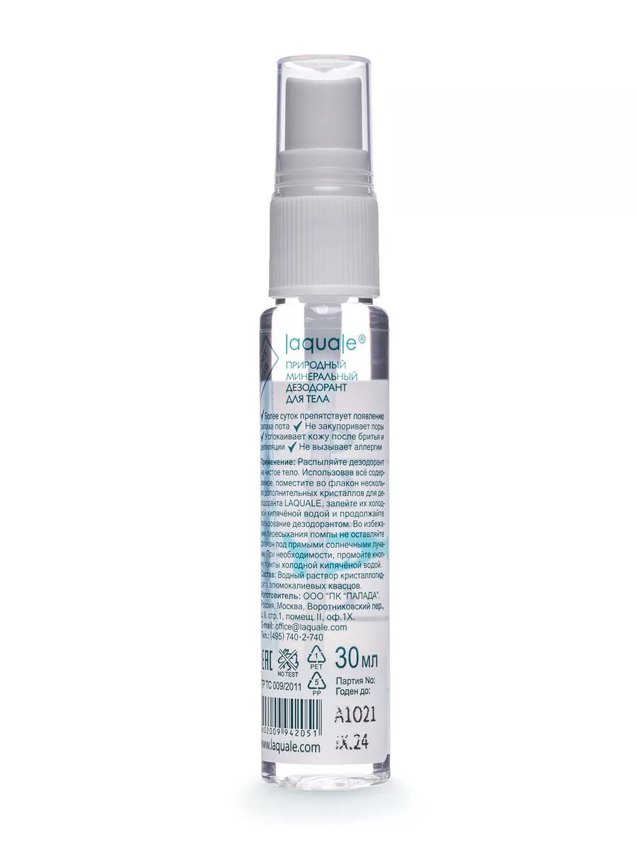 Минеральный дезодорант для тела LAQUALE deo-aqua от пота (мужской/женский), 30 мл интересное:
