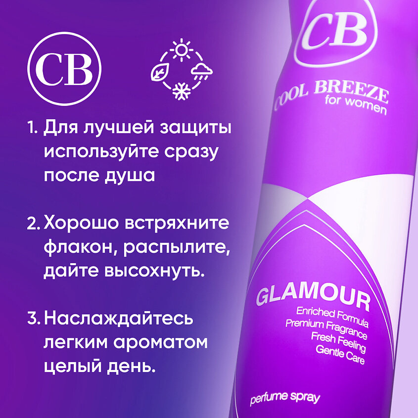 Купить Дезодорант женский спортивный COOL BREEZE Glamour CB 200 мл Для спорта, парфюмированный фруктово-цветочный