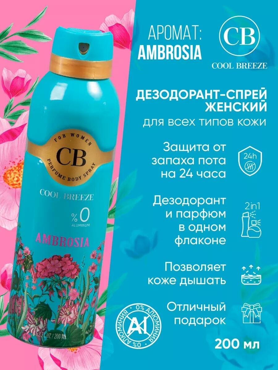 Купить Дезодорант женский COOL BREEZE CB Ambrosia 200 мл Парфюмированный цветочный Амброзия
