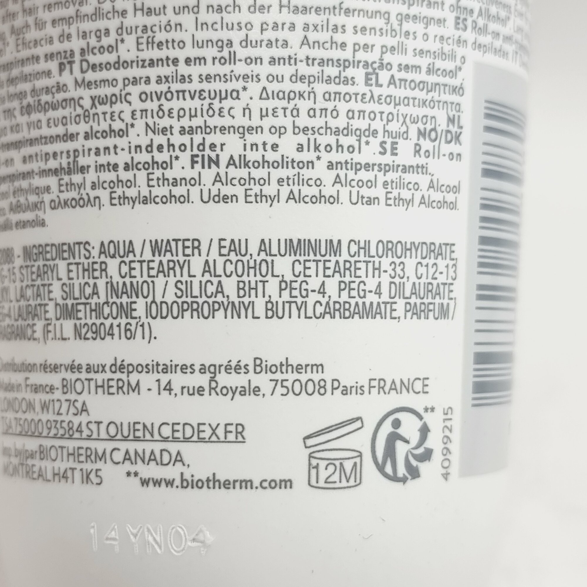 Biotherm Шариковый антиперспирант Deo Pure 48 часов, с минеральным комплексом без спирта, 75 мл (из Финляндии) интересное: